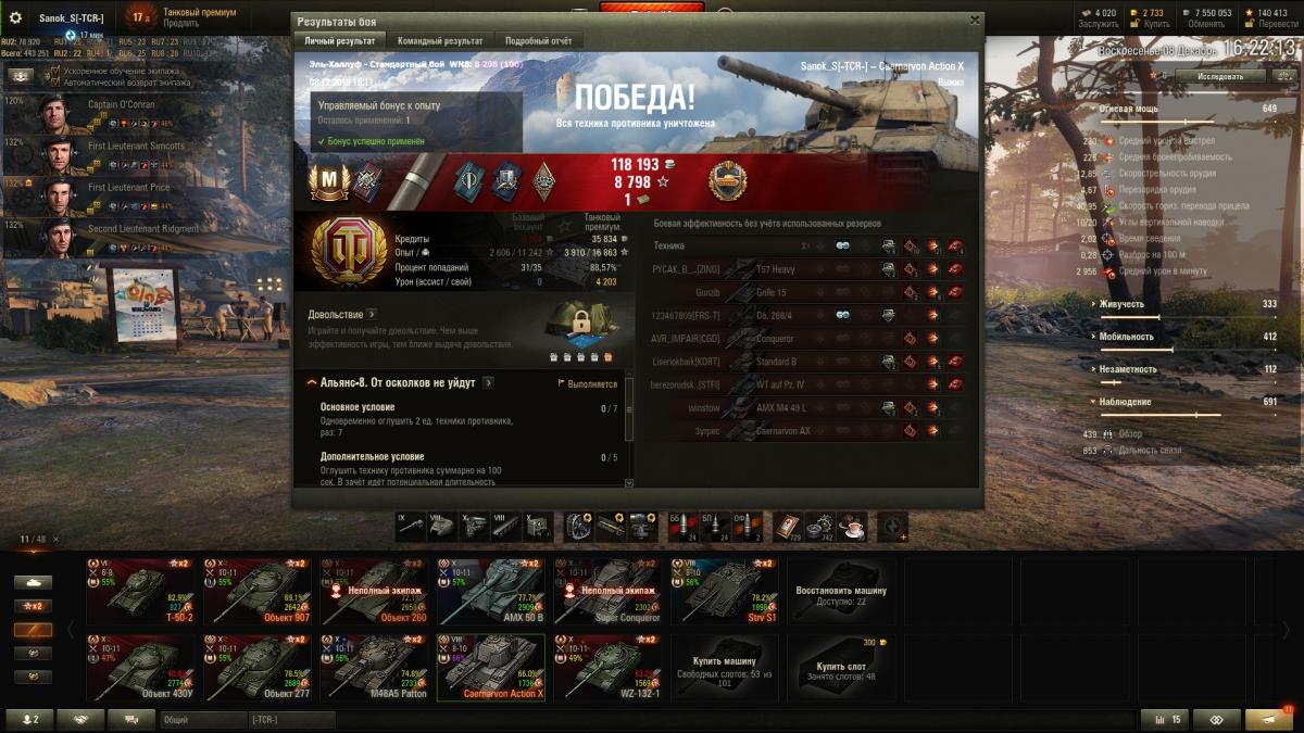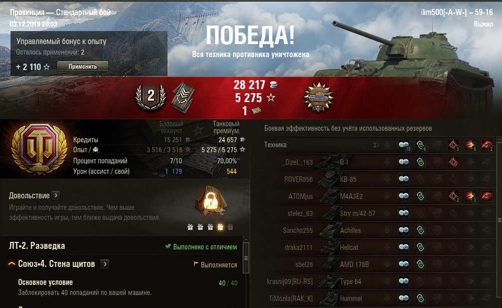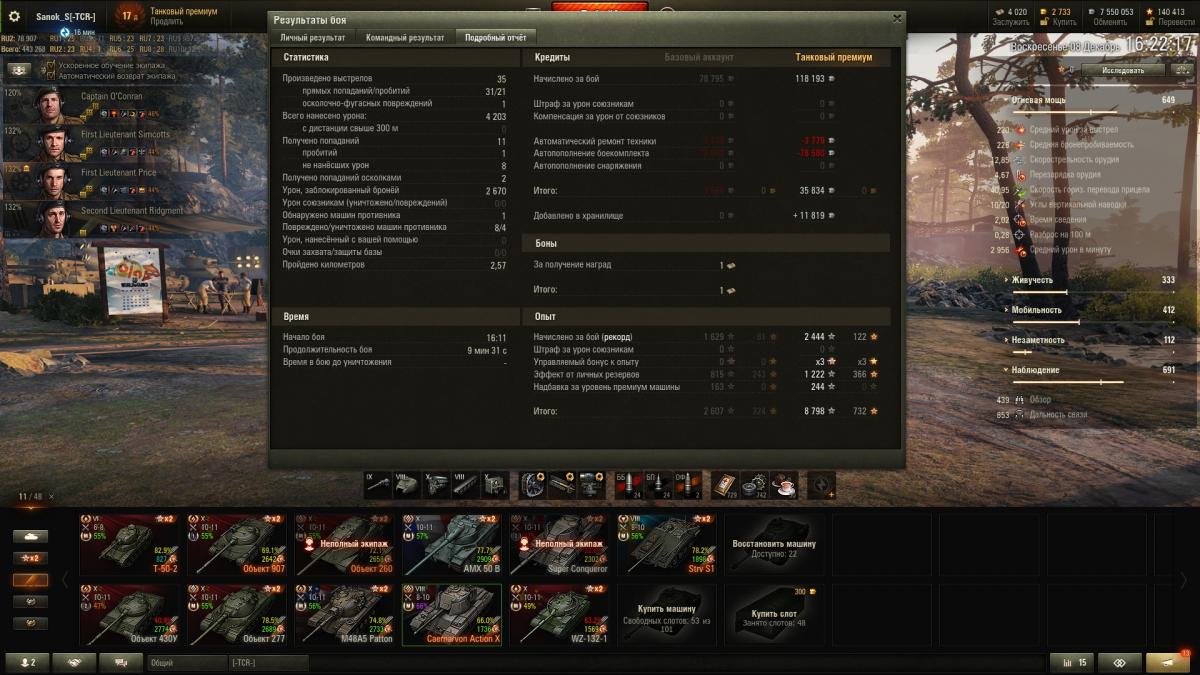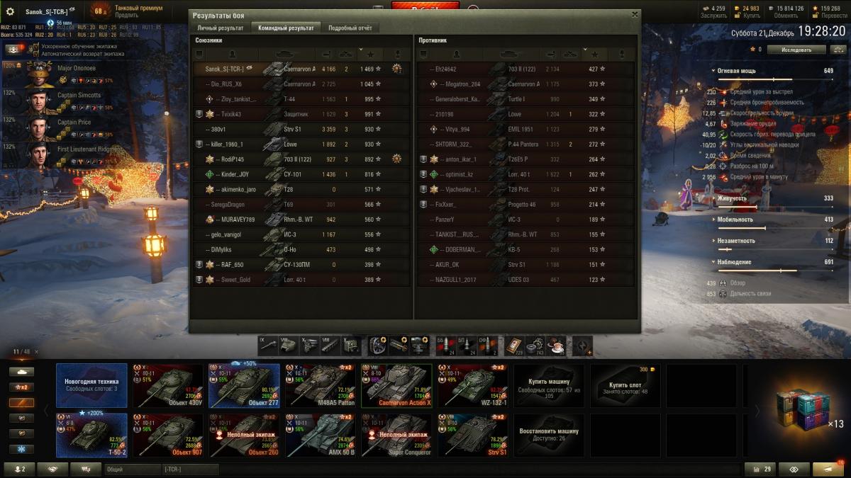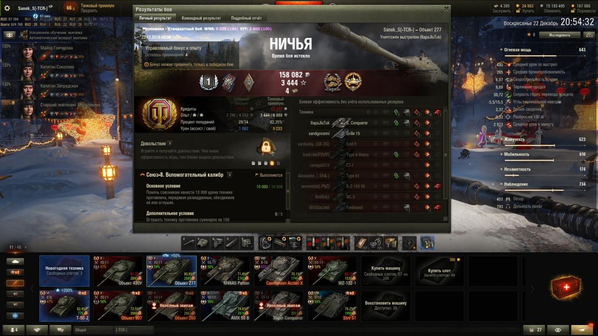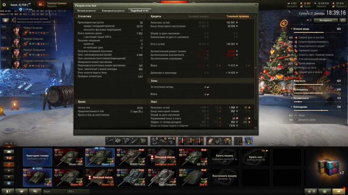 ilim500 Опубликовано: 13 декабря, 2019 Игроки 19 460 публикаций 43 276 боёв Жалоба Поделиться Опубликовано: 13 декабря, 2019 (изменено) пошли лутбоксы от картошки...взял адын штук:http://cdn-frm-eu.wargaming.net/wot/ru/uploads/monthly_12_2019/post-1654869-0-55775700-1576252152_thumb.jpgстиль на лт10 франков.спс кровавому вигэ, что бы я без него делал, с 1 экипажем на ветку тяжей французиков аж на две прокачанные)_))притом ни вовзращаццо на 50бэ, ни выкупать свой 45% амх 54 не тянет по нынешнему рандому)ну, елка 9 прокачал. В прошлых годах было дольше.даёт чертежей по нациям - хватило, чтобы открыть 7 уровни у шведов (скорее всего по тяжам пойду в первую очередь)http://cdn-frm-eu.wargaming.net/wot/ru/uploads/monthly_12_2019/post-1654869-0-71793800-1576490981_thumb.jpgблаго по экипажу то ли с прошлой, то ли с позапрошлой елки были шведо-самки - без наводчика. (Поставил снегурочку этого года)да и учебных пособий накопилось до опы всем до 2.9 перка сделал - а персональным пособием за елку 10 сразу почти командирше 4 перк открыл)как-то проблема перковости экипажа сейчас просто за серебро решается - люди вкидывают по паре десятков лямов в экипаж и всё)) и английскую арту - пока не покупал, может чертежами, если возьму елку 10 атмосферы - на 8 хватит)елка добилась до 10 вообще легкоhttp://cdn-frm-eu.wargaming.net/wot/ru/uploads/monthly_12_2019/post-1654869-0-24503600-1576618847_thumb.jpgсейчас главная фишка, это большие украшения по 2.5% к фарму - первое стоит 500 осколков, второе уже 2000, вроде - но оно дропануло из малой коробки - 3-е укашение будет 3.000 осколков...но тут я откырл прошлые колеции - на НГ2019 у меня вообще собака не валялась, чтобы камо получить нужно 4-5.000 осколков за школу елки, а вот за 2018 за чуточку осколков взял камо на советов и немцев)http://cdn-frm-eu.wargaming.net/wot/ru/uploads/monthly_12_2019/post-1654869-0-56985400-1576618874_thumb.jpgПущай лежат))таки взял арту 7 англов и с потраченными чертежами мне до 8 арты осталось аж 30.000 опыта - вообще лафа.а так ... нужно, в принципе фармить - е4 выкупать для экипажа с е5, француза тяжа какого взять - скорее всего амх51 выкуплю 9 уровень без барабана, хотя таки поглядыаваю на 50бе))ну и китайцев - то ли вз120, то ли малютку т34-2))прошел за 15 боёв 59-16, поставил лт7 китая - но надо свободки подкопить для стока... ну и под НГ может коробок таки куплю - уж очень этого совета двухпушкового хочеццо)http://cdn-frm-eu.wargaming.net/wot/ru/uploads/monthly_12_2019/post-1654869-0-13906200-1576619137_thumb.jpgа то и нового тяжа према 8 нецев - 75тs) Изменено 17 декабря, 2019 пользователем ilim500 [-A-W-] The Angels of War Ссылка на комментарий Поделиться на других сайтах Другие способы поделиться...