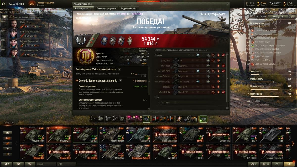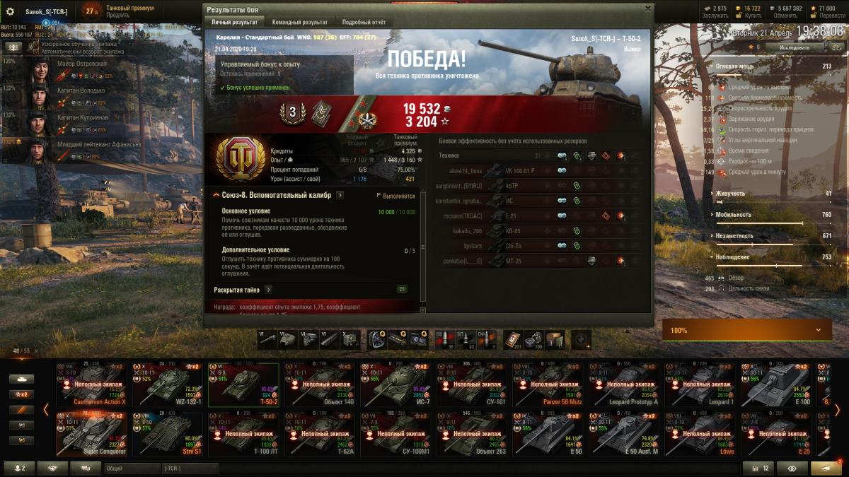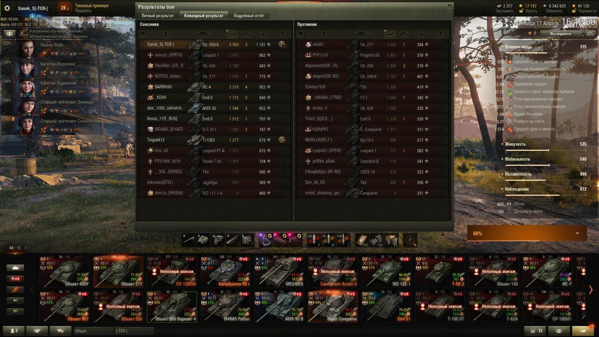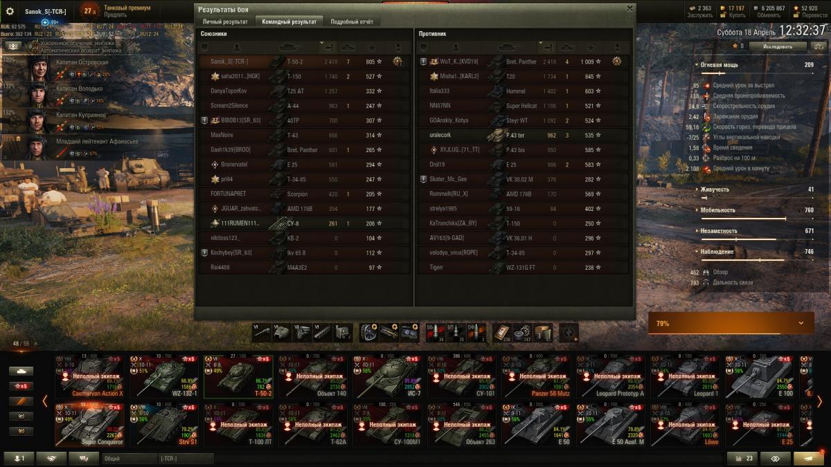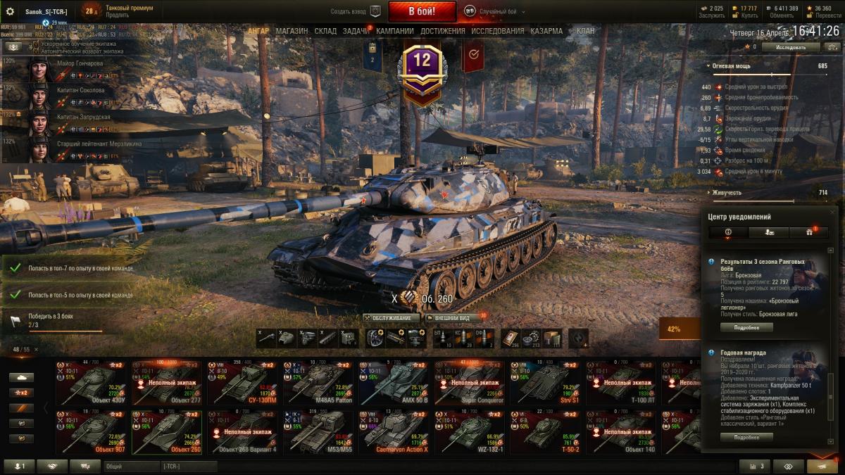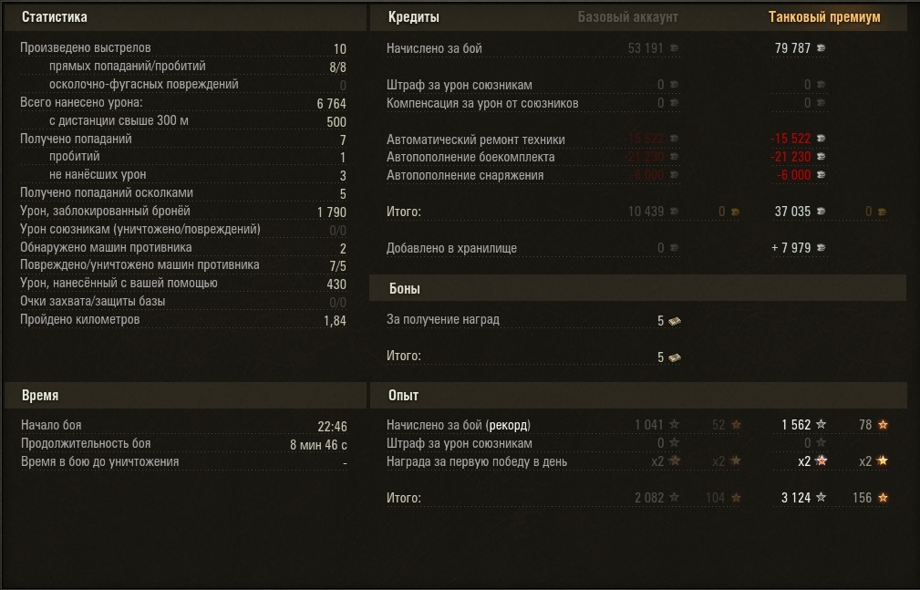 Sanok_S Опубликовано: 14 апреля, 2020 Игроки 9 576 публикаций 33 973 боя Жалоба Поделиться Опубликовано: 14 апреля, 2020 Спс, Стасу меня сегодня почему-то забрали бронзовый стиль с нашивкой с прошлого сезона ранговых боев, а новый пока не дали, странно ну да ладно, ждемс, так сказать раз движения есть и народ начал плакать за то что их банют за читы, то скоро награды раздадут, там 2 боновых модуля и танк 9 лвл новый, вроде не голдозависим, может покатаю его ибо за германию ЛБЗ на экскалибур не сделаны вообще, за другие нации сделаны.http://cdn-frm-eu.wargaming.net/wot/ru/uploads/monthly_04_2020/post-10821115-0-41827500-1586856445_thumb.jpgоб 263 вроде не плохой, но для меня сложный, башни нет, увн нет, угн нет, хорош в коридорах, подкалиберы в 300 пробоя не всегда берут уверенно то что хотелось бы, а у сток пушки пробитие в комфортные 340, но альфа вместо 550 аж 440, маловато будет, ну да ладнобои сегодня странные какие-то, то сливы были, то несколько побед с малым настрелом, можно с 263 пересаживаться на 268/4, а потом продать после акции "В бой" 7,8 и 9 лвл. без скидки через недельку. Посмотрю, либо добью остаток опыта либо чертеж один открою. http://cdn-frm-eu.wargaming.net/wot/ru/uploads/monthly_04_2020/post-10821115-0-71528900-1586856460_thumb.jpg 1 Ссылка на комментарий Поделиться на других сайтах Другие способы поделиться...