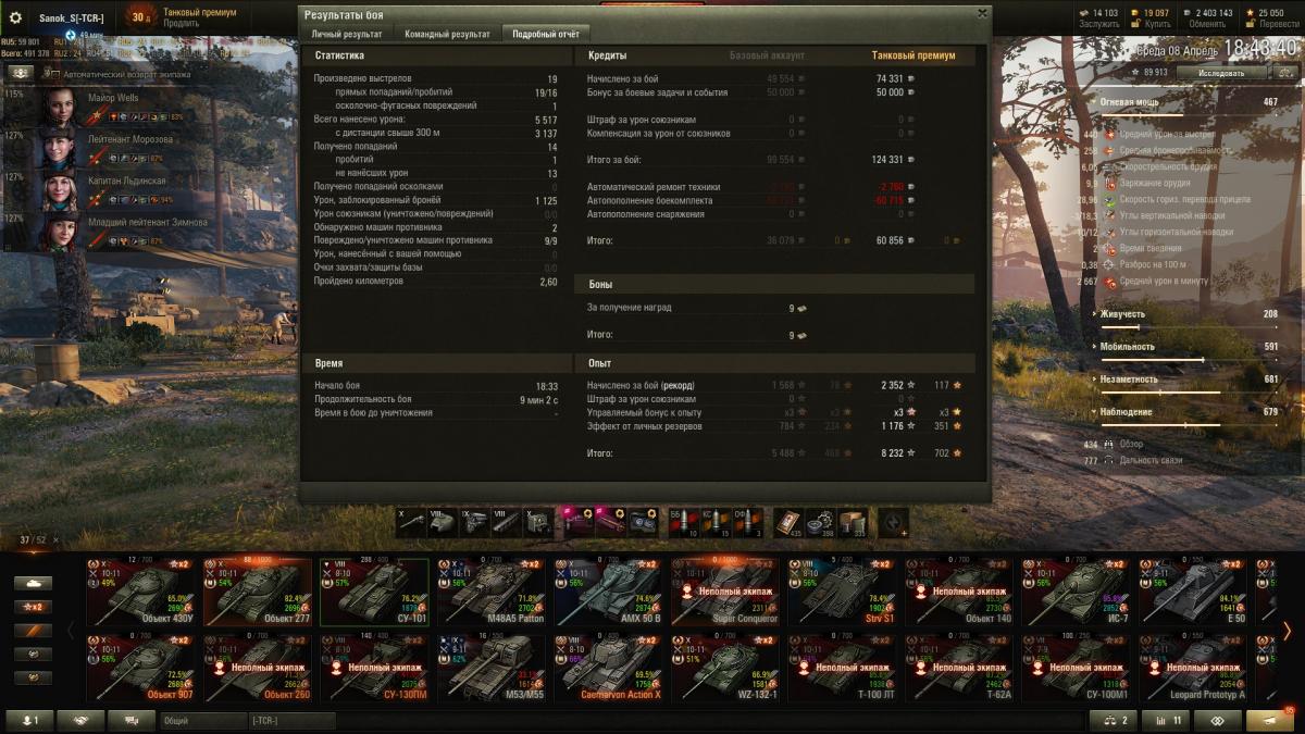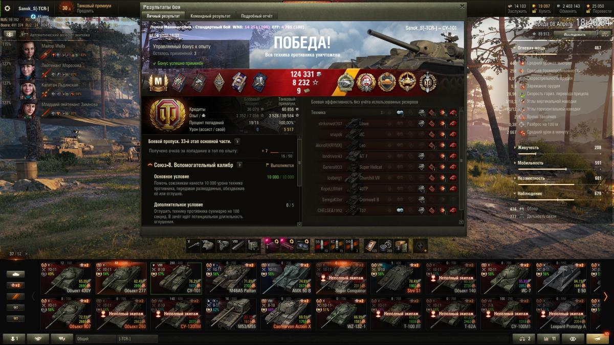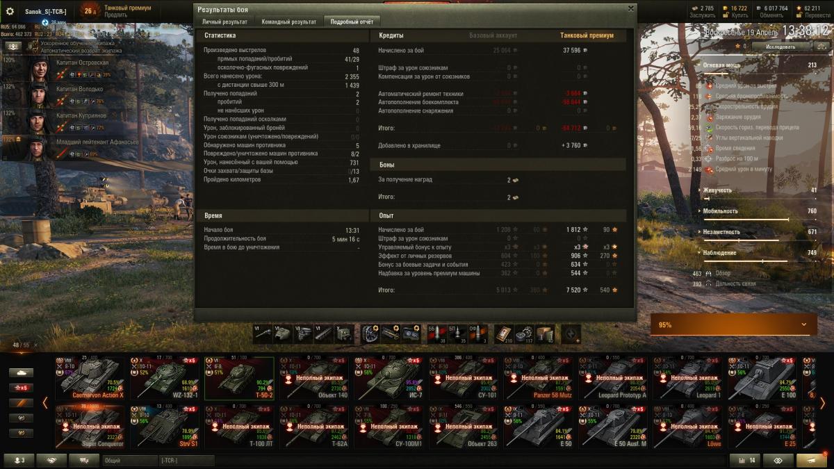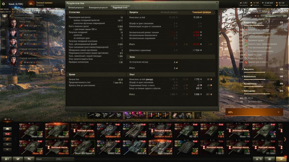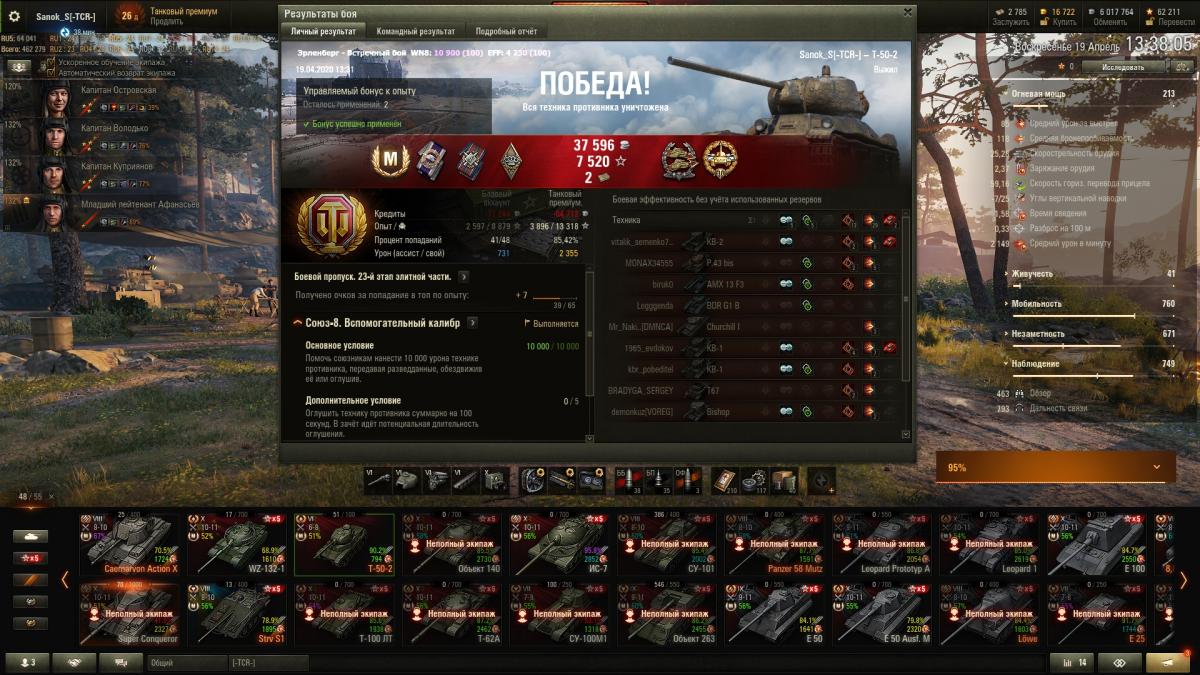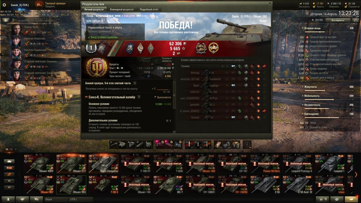 Sanok_S Опубликовано: 14 апреля, 2020 Игроки 9 576 публикаций 33 973 боя Жалоба Поделиться Опубликовано: 14 апреля, 2020 Спс, Стасу меня сегодня почему-то забрали бронзовый стиль с нашивкой с прошлого сезона ранговых боев, а новый пока не дали, странно ну да ладно, ждемс, так сказать раз движения есть и народ начал плакать за то что их банют за читы, то скоро награды раздадут, там 2 боновых модуля и танк 9 лвл новый, вроде не голдозависим, может покатаю его ибо за германию ЛБЗ на экскалибур не сделаны вообще, за другие нации сделаны.http://cdn-frm-eu.wargaming.net/wot/ru/uploads/monthly_04_2020/post-10821115-0-41827500-1586856445_thumb.jpgоб 263 вроде не плохой, но для меня сложный, башни нет, увн нет, угн нет, хорош в коридорах, подкалиберы в 300 пробоя не всегда берут уверенно то что хотелось бы, а у сток пушки пробитие в комфортные 340, но альфа вместо 550 аж 440, маловато будет, ну да ладнобои сегодня странные какие-то, то сливы были, то несколько побед с малым настрелом, можно с 263 пересаживаться на 268/4, а потом продать после акции "В бой" 7,8 и 9 лвл. без скидки через недельку. Посмотрю, либо добью остаток опыта либо чертеж один открою. http://cdn-frm-eu.wargaming.net/wot/ru/uploads/monthly_04_2020/post-10821115-0-71528900-1586856460_thumb.jpg 1 Ссылка на комментарий Поделиться на других сайтах Другие способы поделиться...