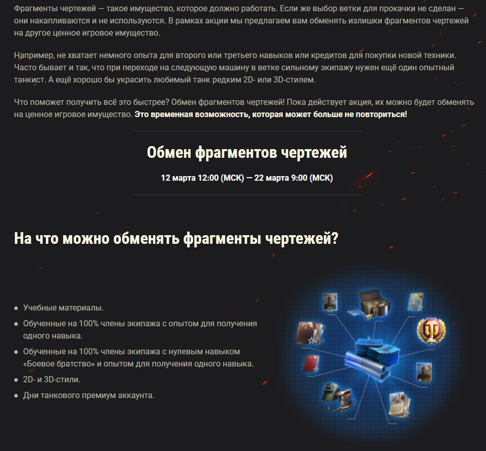 ilim500 Опубликовано: 13 марта, 2021 Игроки 19 458 публикаций 43 276 боёв Жалоба Поделиться Опубликовано: 13 марта, 2021 до 22 марта нужно успеть фрагменты этих каканых чертежей поменять на пособия экипажа:https://worldoftanks.ru/ru/news/special-offers/blueprint-fragment-exchange-ru/http://cdn-frm-eu.wargaming.net/wot/ru/uploads/monthly_03_2021/post-1654869-0-16375200-1615660232_thumb.jpg [-A-W-] The Angels of War Ссылка на комментарий Поделиться на других сайтах Другие способы поделиться...
