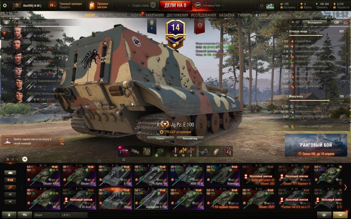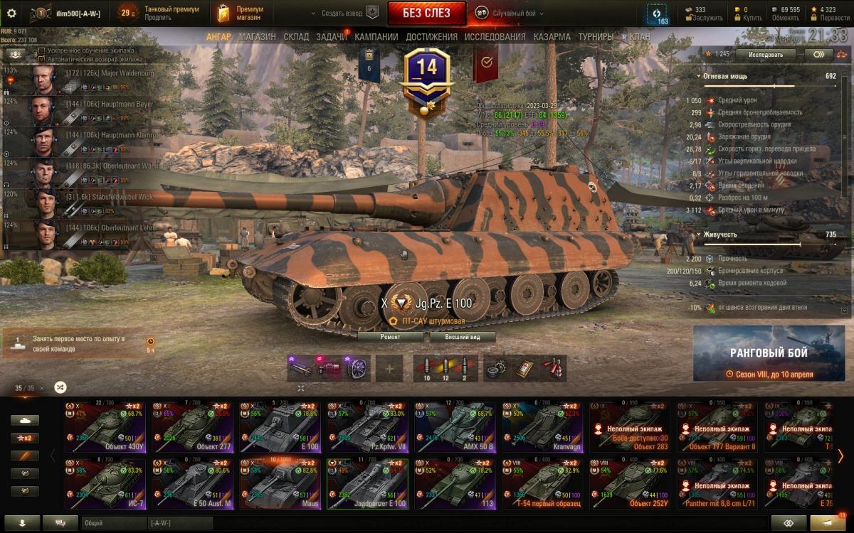 ilim500 Опубликовано: 1 апреля, 2023 Игроки 19 458 публикаций 43 276 боёв Жалоба Поделиться Опубликовано: 1 апреля, 2023 чищу ангар от 8 - вот шведа ст8 - все...перекинул экипаж с тт9 - китая на новую ветку на ст6 - тип 58...когда нить до 9 тяжа доклыпаю)как с италиком ст5 - покудова вкидываю пособоия и свободку - там видно будет...так-сяк дневаная сессия:показывает - что нужно больше 10))) [-A-W-] The Angels of War Ссылка на комментарий Поделиться на других сайтах Другие способы поделиться...