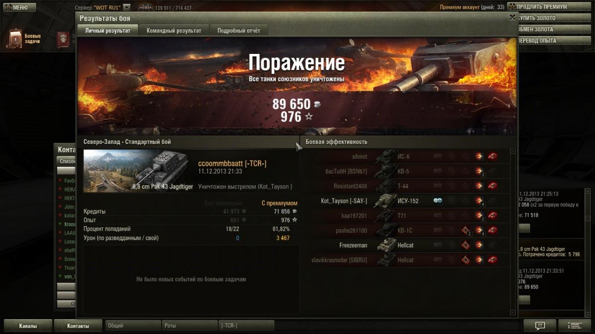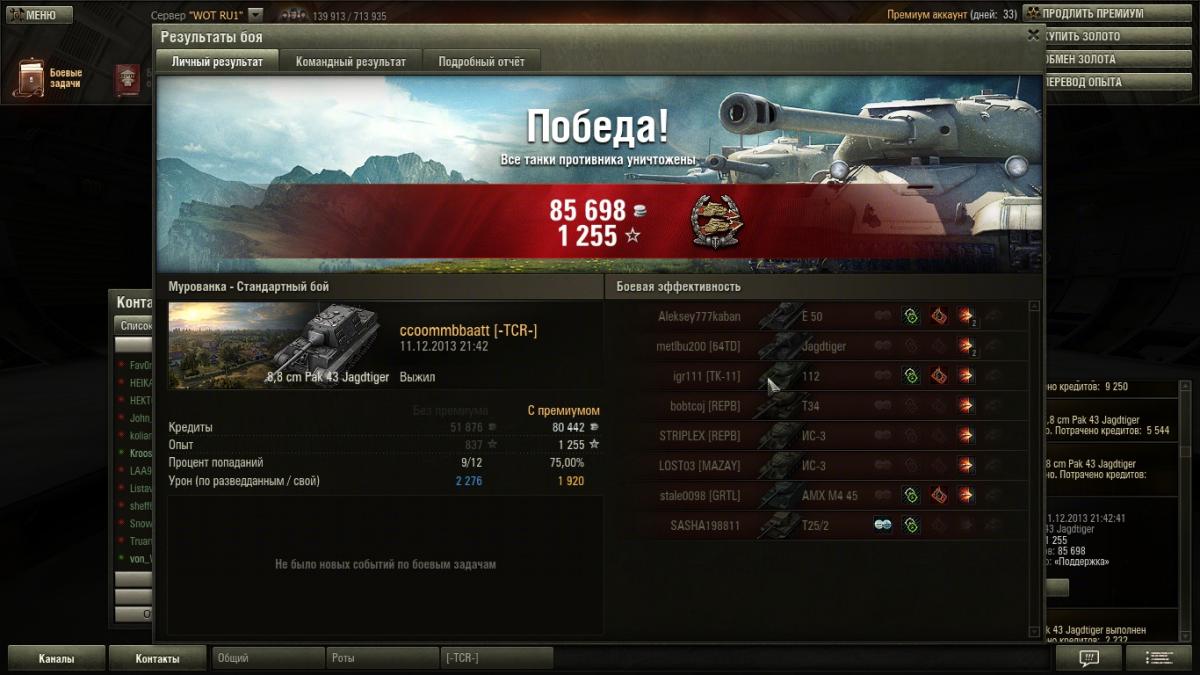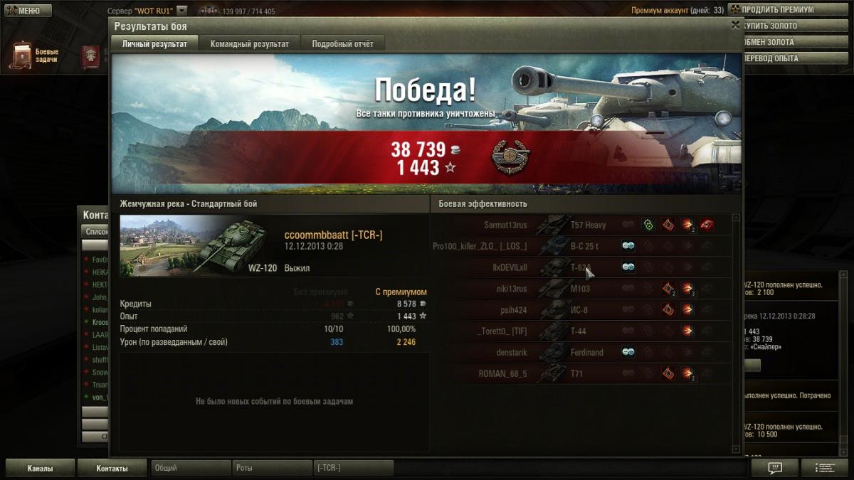 OnColdWings Опубликовано: 13 декабря, 2013 Игроки 6 006 публикаций 17 420 боёв Автор Жалоба Поделиться Опубликовано: 13 декабря, 2013 Общая статистика за вчера:http://www.noobmeter.com/recent/ru/2be3116rus/3864146/3864146_00008226_20131210_202030/3864146_00008231_20131213_044518Примечателен один бой:http://www.noobmeter.com/recent/ru/2be3116rus/3864146/3864146_00008230_20131212_164232/3864146_00008231_20131213_044518Это было круто Ссылка на комментарий Поделиться на других сайтах Другие способы поделиться...