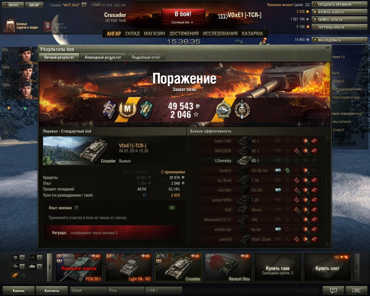 VOxE1 Опубликовано: 4 января, 2014 Игроки 807 публикаций 17 396 боёв Жалоба Поделиться Опубликовано: 4 января, 2014 ПоражениеБой: Перевал 04.01.2014 15:26:23Танк: CrusaderПолучено опыта: 2 046Получено кредитов: 49 543Достижения в бою: «Воин», «Бронебойщик», «Стрелок», Медаль Рэдли-Уолтерса, Знак классности «Мастер» 9мать его фрагов и 2700 на 5ом не победили команду рэдов Ten shots, don`t kill - no luck, no skill Ссылка на комментарий Поделиться на других сайтах Другие способы поделиться...