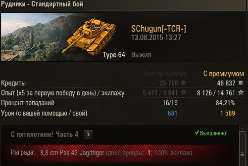Sanok_S Опубликовано: 13 августа, 2015 Игроки 9 576 публикаций 33 973 боя Поделиться Опубликовано: 13 августа, 2015 (изменено) ну я вчера тоже поиграл, только вот блин бяда конкретнейшая була, 2 позитивные нотки из всего этого это 2я полоса на ствол П1 и 1м боем мастер на Е3 в аццки сливном бою, все остальное просто жесть, пару танков купил, начал на них оборудование ставить, сегодня продолжу http://cdn-frm-eu.wargaming.net/4.4/style_emoticons/wot/Smile_Default.gifhttp://wotreplays.ru/site/5986895#statsобратите внимание на количество критов http://cdn-frm-eu.wargaming.net/4.4/style_emoticons/wot/Smile_great.gif з.ы. вчера в 1м бою сделал 2 поджега на Леве, притом танки горели с 1-го раза, сколько на СТ мучался, а тут просто тык у попко и файер, тык в заднюю часть боковины и опять http://cdn-frm-eu.wargaming.net/4.4/style_emoticons/wot/Smile_amazed.gif Изменено 13 августа, 2015 пользователем Sanok_S Ссылка на комментарий