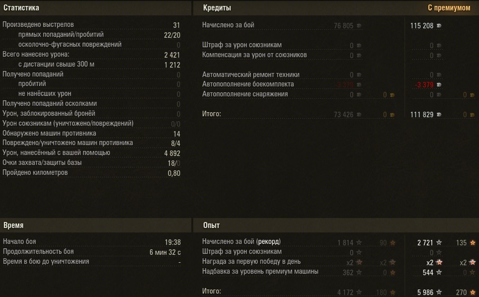 Pahey_prim Опубликовано: 23 сентября, 2015 Игроки 5 082 публикации 24 904 боя Поделиться Опубликовано: 23 сентября, 2015 24 Сен 2015 - 02:54 пользователь SChugun сказал:не плохо смыл Не плохо? Шикарные результаты. В рот вас… Мама целовала Ссылка на комментарий