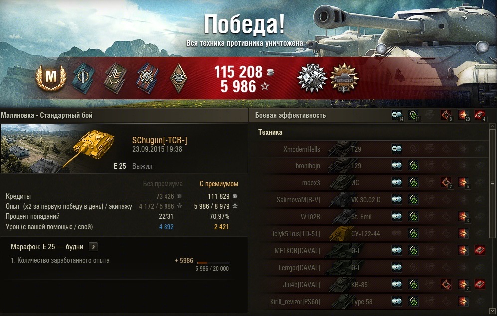 Pahey_prim Опубликовано: 23 сентября, 2015 Игроки 5 082 публикации 24 904 боя Поделиться Опубликовано: 23 сентября, 2015 Ну что, марафон успешно пройден, Е25 в ангареhttp://cdn-frm-eu.wargaming.net/4.4/style_emoticons/wot/Smile_honoring.gif Заключительный бой марафона окончен "Мастером" на СТ-1. В рот вас… Мама целовала Ссылка на комментарий