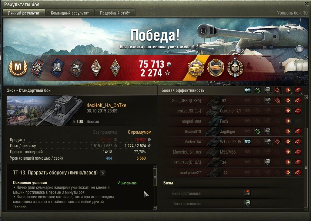 OnColdWings Опубликовано: 9 октября, 2015 Игроки 6 006 публикаций 17 420 боёв Автор Поделиться Опубликовано: 9 октября, 2015 09 Окт 2015 - 09:12 пользователь SChugun сказал: ну... я, например, качал тест чтобы попробовать некоторые танки и решить для себя, буду ли я на них катать на основеhttp://cdn-frm-eu.wargaming.net/4.4/style_emoticons/wot/Smile-tongue.gif Ну как бы все давно перепробовано. Ну можно покатать Е50 - как бы следующий мой топ по этой ветке будет Мытый. Хотя какая то часть 45% уйдет на тест и в рандоме будет легче, наверно ... Ссылка на комментарий