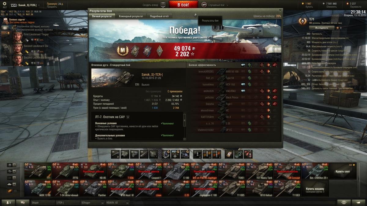 Sanok_S Опубликовано: 13 октября, 2015 Игроки 9 576 публикаций 33 973 боя Поделиться Опубликовано: 13 октября, 2015 (изменено) 13 Окт 2015 - 11:57 пользователь Pahey_prim сказал: На ИС-3 сидят дамы, соответственно "Боевые подруги"понял, спс бум пробовать, все таки зря пайки народ игнорит, рэально буст статов.13 Окт 2015 - 13:06 пользователь OnColdWings сказал:Музя на ИС-2. Бой на Заполярье (вроде) До слез, цука.если ты про виртуханы, то теперь я понял, будет что мамке показать как он сказал http://cdn-frm-eu.wargaming.net/4.4/style_emoticons/wot/Smile_Default.gif13 Окт 2015 - 14:19 пользователь Pahey_prim сказал: Первая звезда на ПерсикеЗаипали подсосанцы фрагов. На нём сегодня 5 боёв, 2,4к средний, фрагов за бой 0,8у меня тоже есть вакантный экипаж и танк как бы не совсем нужен, брал под ЛБЗ, а он не пригодился, вот он хомяк, думаю можа ветку паттона попробовать? хулькат наверное тоже не актуален, да и занерфлен он в качель, ЛБЗ на х4/х5 можно и на клопе сделать во время фарма http://cdn-frm-eu.wargaming.net/wot/ru/uploads/monthly_10_2015/post-10821115-0-96221900-1444751996_thumb.jpghttp://cdn-frm-eu.wargaming.net/wot/ru/uploads/monthly_10_2015/post-10821115-0-51112800-1444751999_thumb.jpg з.ы ну и про звезды, только что http://cdn-frm-eu.wargaming.net/4.4/style_emoticons/wot/Smile_great.gifhttp://cdn-frm-eu.wargaming.net/wot/ru/uploads/monthly_10_2015/post-10821115-0-32183300-1444757156_thumb.jpg жиденький, но мастерок + денюшка за ЛБЗ http://cdn-frm-eu.wargaming.net/4.4/style_emoticons/wot/Smile_great.gifhttp://cdn-frm-eu.wargaming.net/wot/ru/uploads/monthly_10_2015/post-10821115-0-73469900-1444761537_thumb.jpg Изменено 14 октября, 2015 пользователем Sanok_S Ссылка на комментарий