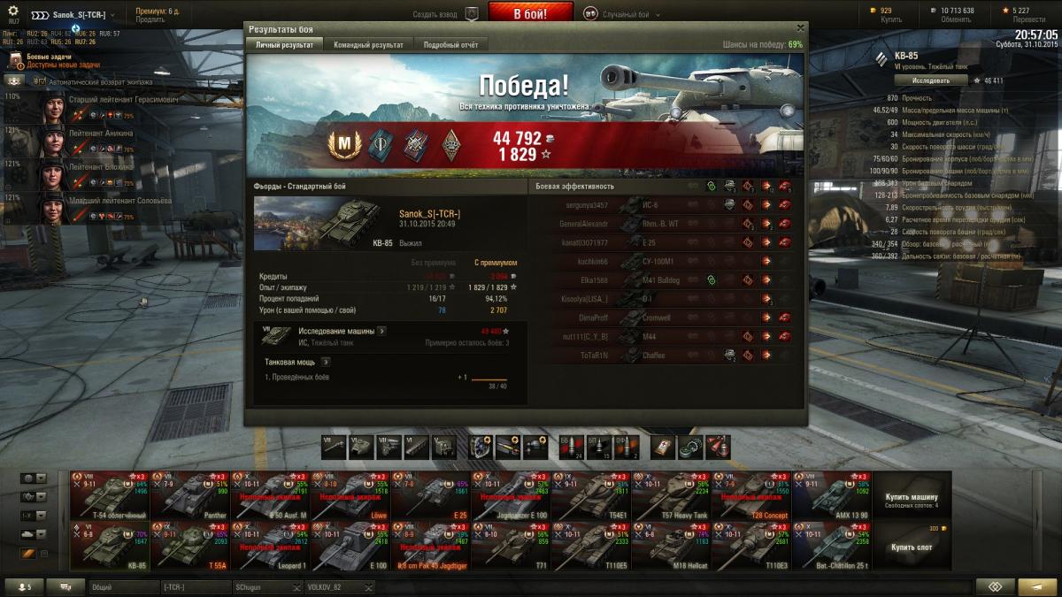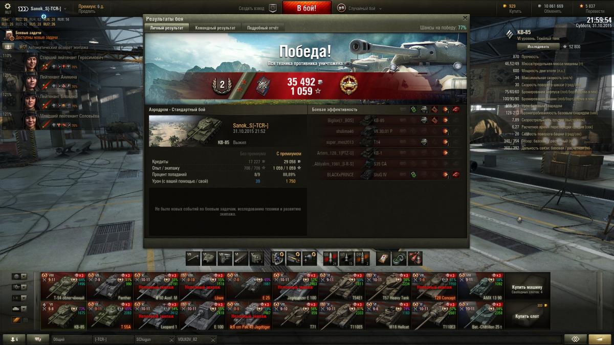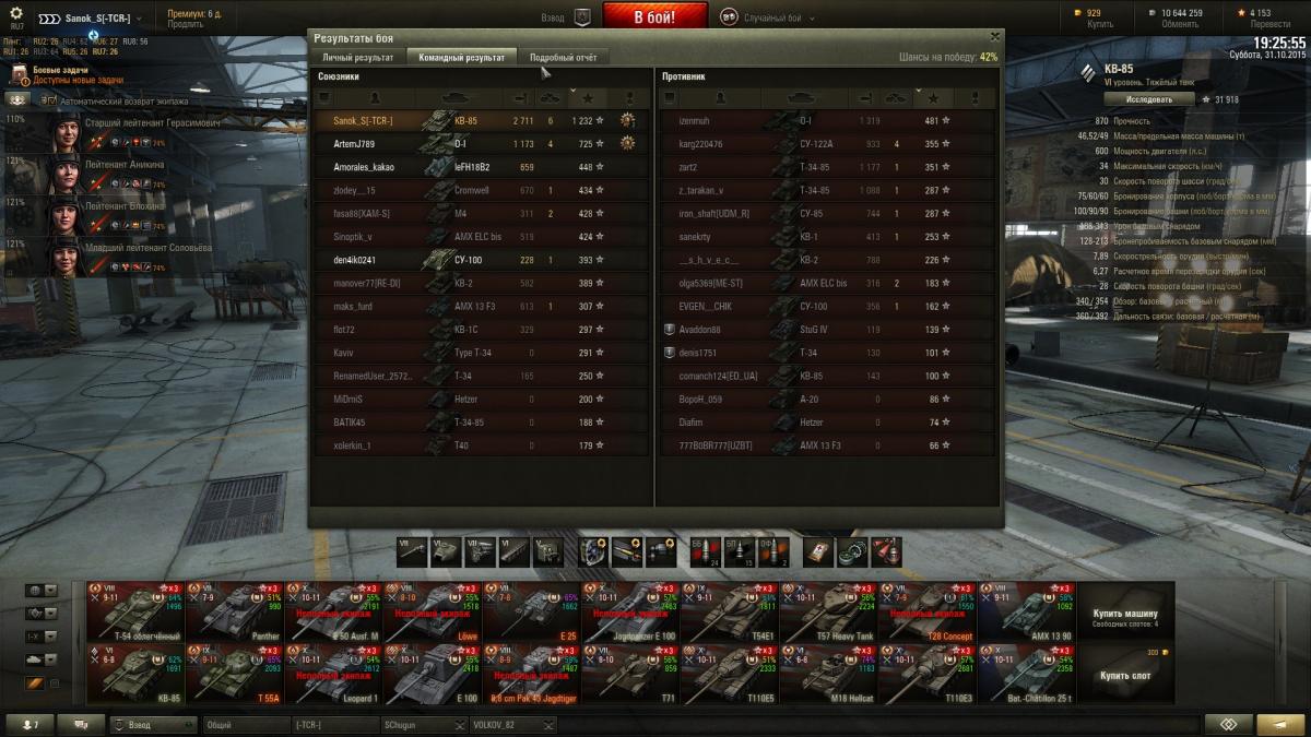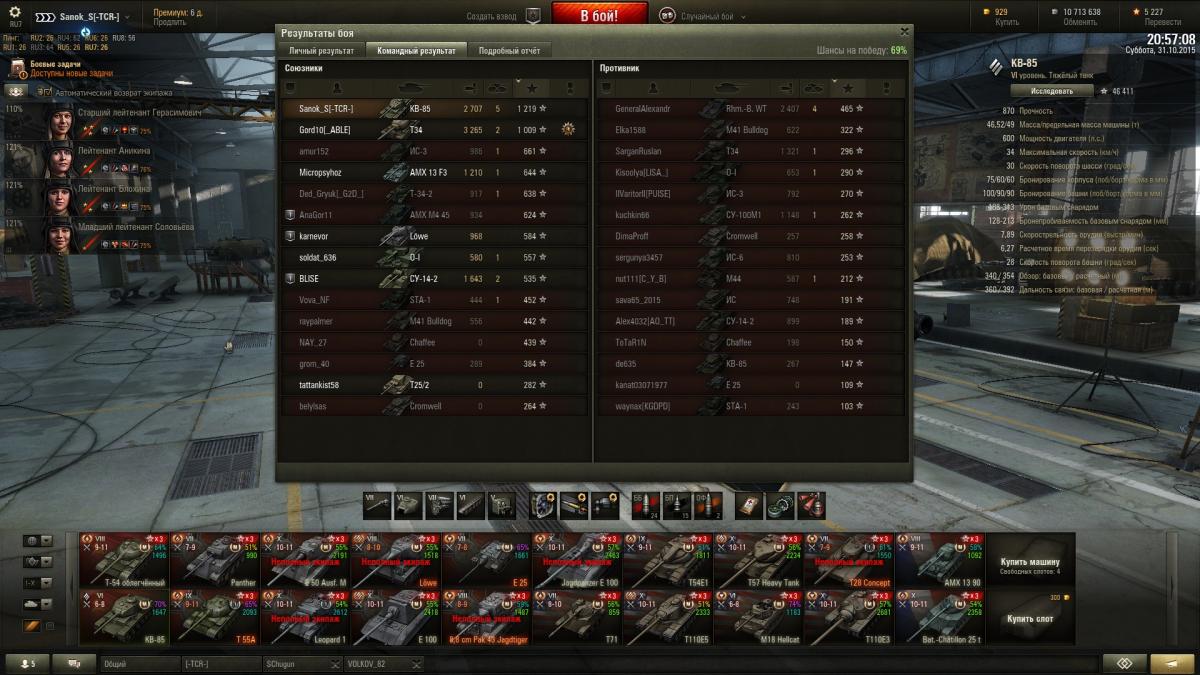 Sanok_S Опубликовано: 31 октября, 2015 Игроки 9 576 публикаций 33 973 боя Поделиться Опубликовано: 31 октября, 2015 (изменено) Итак докладаю ИС успешно открыт и приобретен со скидкой, КВ-85 с пушкой 100 мм убер машина на своем уровнена 51м бою взята 2-я отметка, с отличием сделаны 2 ЛБЗ на об.260, выполнены боевые задачи на выходные 40 побед + получен вентиль уровня 3 и традиционно ещё 3 мастера http://cdn-frm-eu.wargaming.net/wot/ru/uploads/monthly_10_2015/post-10821115-0-52935700-1446318464_thumb.jpghttp://cdn-frm-eu.wargaming.net/wot/ru/uploads/monthly_10_2015/post-10821115-0-85353900-1446318466_thumb.jpghttp://cdn-frm-eu.wargaming.net/wot/ru/uploads/monthly_10_2015/post-10821115-0-21258700-1446318469_thumb.jpghttp://wotreplays.ru/site/6562516#redshir-sanok_s-kv-85http://cdn-frm-eu.wargaming.net/wot/ru/uploads/monthly_10_2015/post-10821115-0-98346300-1446318537_thumb.jpghttp://cdn-frm-eu.wargaming.net/wot/ru/uploads/monthly_10_2015/post-10821115-0-57050200-1446318540_thumb.jpghttp://cdn-frm-eu.wargaming.net/wot/ru/uploads/monthly_10_2015/post-10821115-0-13840500-1446318543_thumb.jpghttp://wotreplays.ru/site/6562510#ensk-sanok_s-kv-85http://cdn-frm-eu.wargaming.net/wot/ru/uploads/monthly_10_2015/post-10821115-0-38388100-1446318569_thumb.jpghttp://cdn-frm-eu.wargaming.net/wot/ru/uploads/monthly_10_2015/post-10821115-0-51990000-1446318571_thumb.jpghttp://cdn-frm-eu.wargaming.net/wot/ru/uploads/monthly_10_2015/post-10821115-0-95089300-1446318573_thumb.jpghttp://wotreplays.ru/site/6562854#f_ordy-sanok_s-kv-85ну и последний бой ни о чем, но на отметины хватило На самом деле открыл ИСа боем раньше, но до 2-й звездочки оставалась ерунда, решил взять, если честно и не знаю что делать дальше, танк рэально лег в руку, сток иса катать не охота, до топовой башни 6,5к свободки не хватает, предтоп ствол для ИС открыт на КВ-85http://cdn-frm-eu.wargaming.net/wot/ru/uploads/monthly_10_2015/post-10821115-0-97547500-1446318604_thumb.jpghttp://cdn-frm-eu.wargaming.net/wot/ru/uploads/monthly_10_2015/post-10821115-0-38730000-1446319047_thumb.jpg Изменено 31 октября, 2015 пользователем Sanok_S 1 Ссылка на комментарий