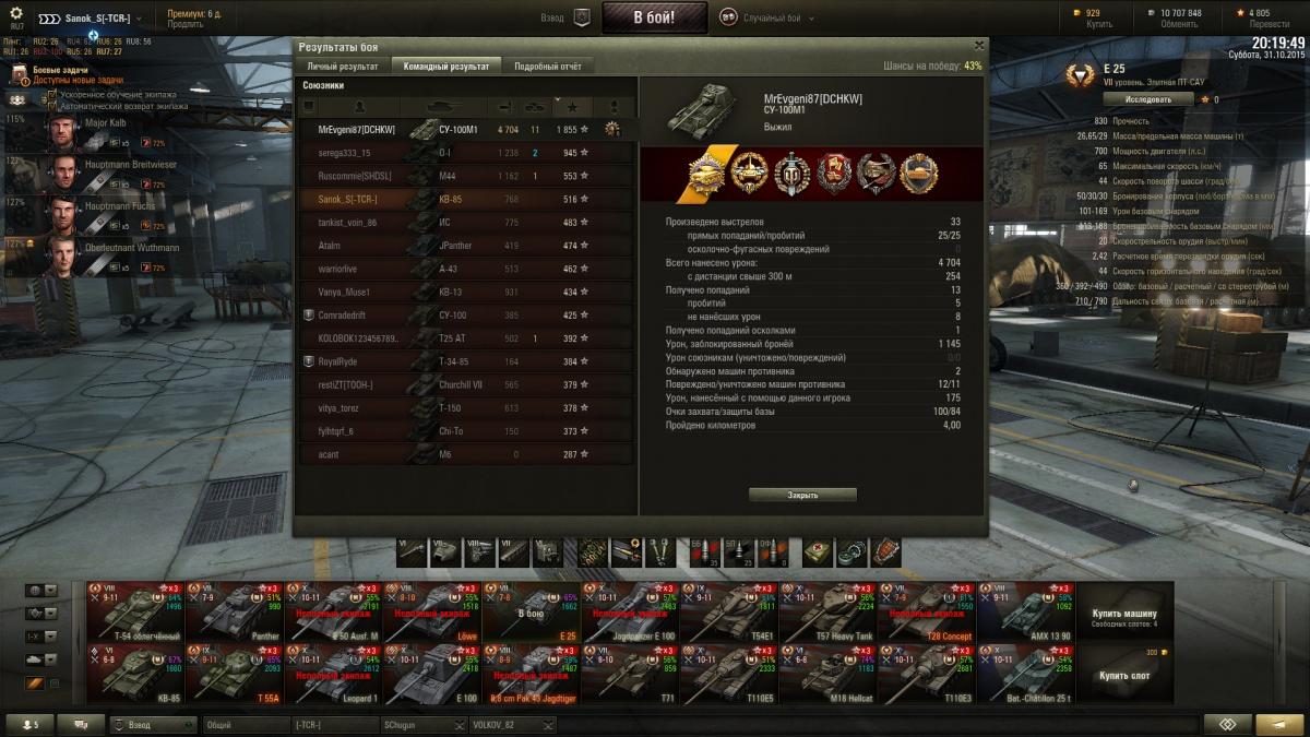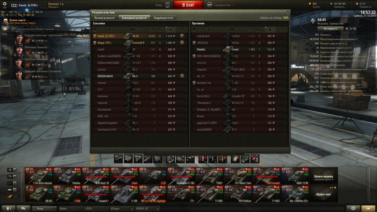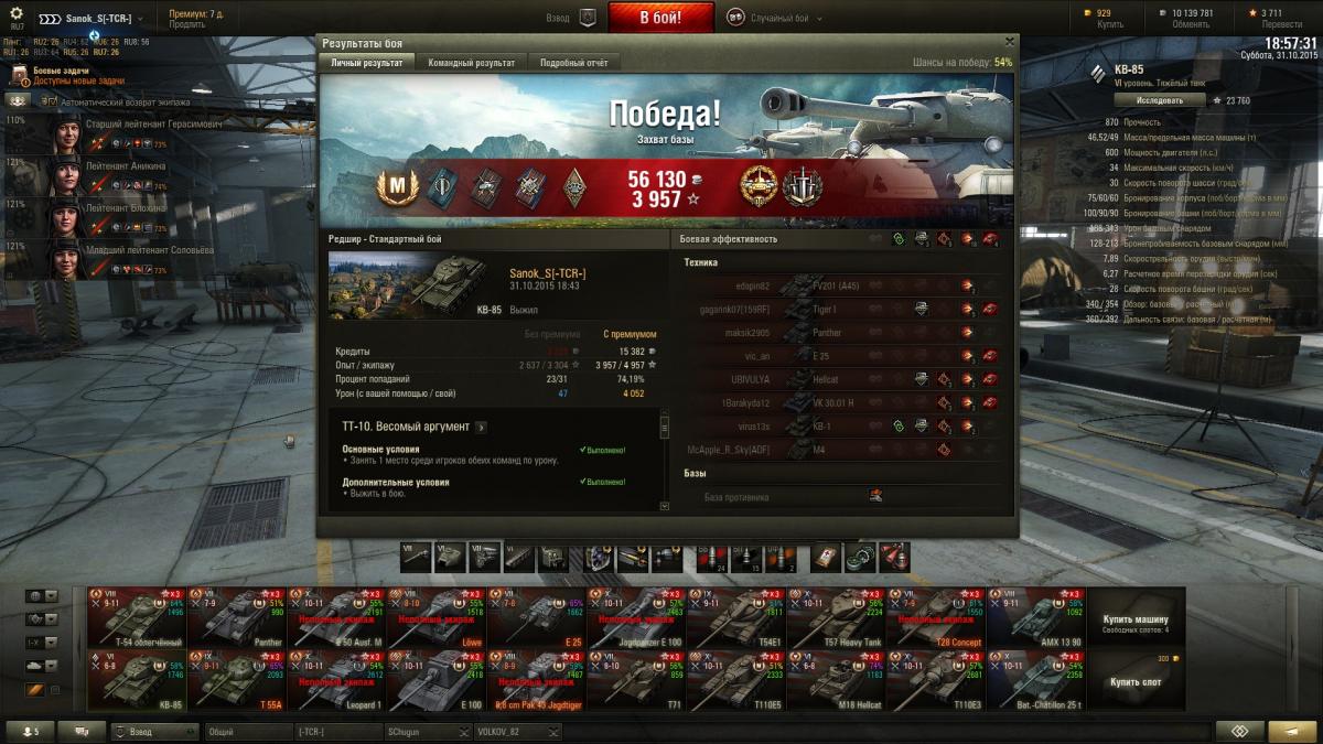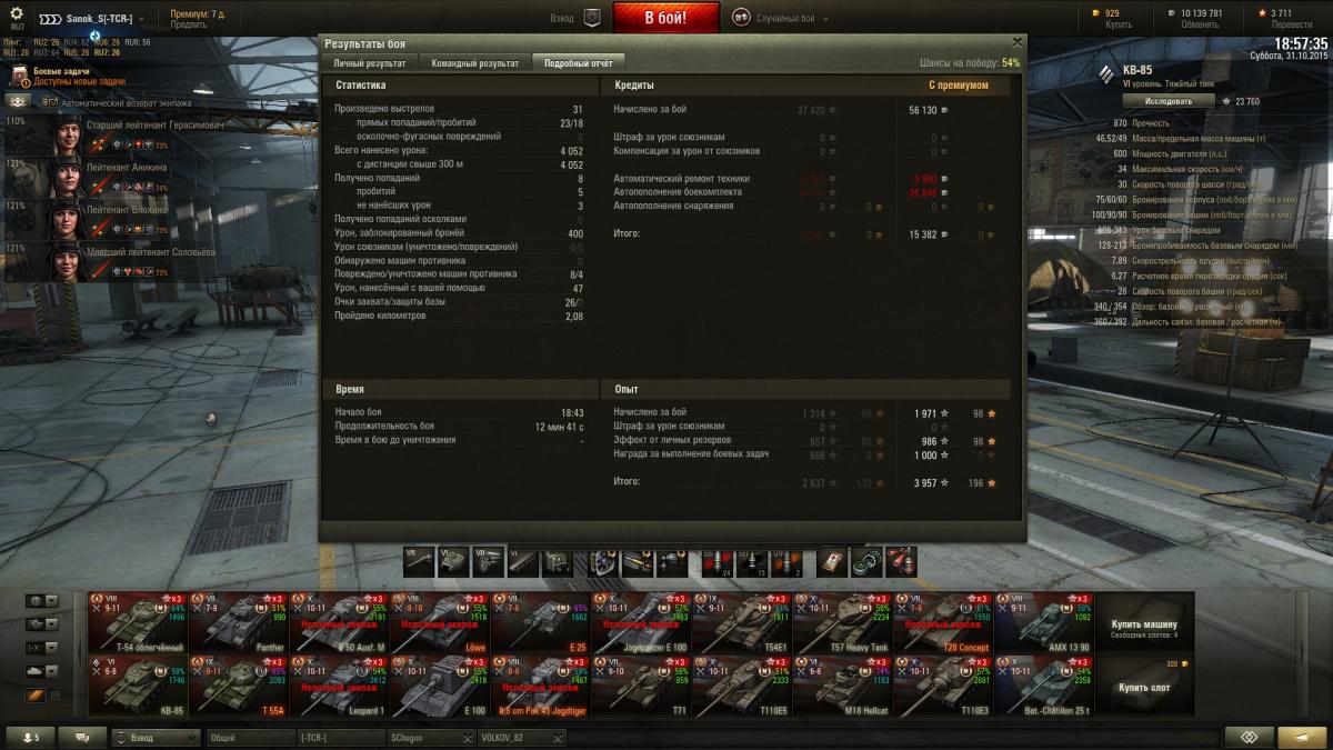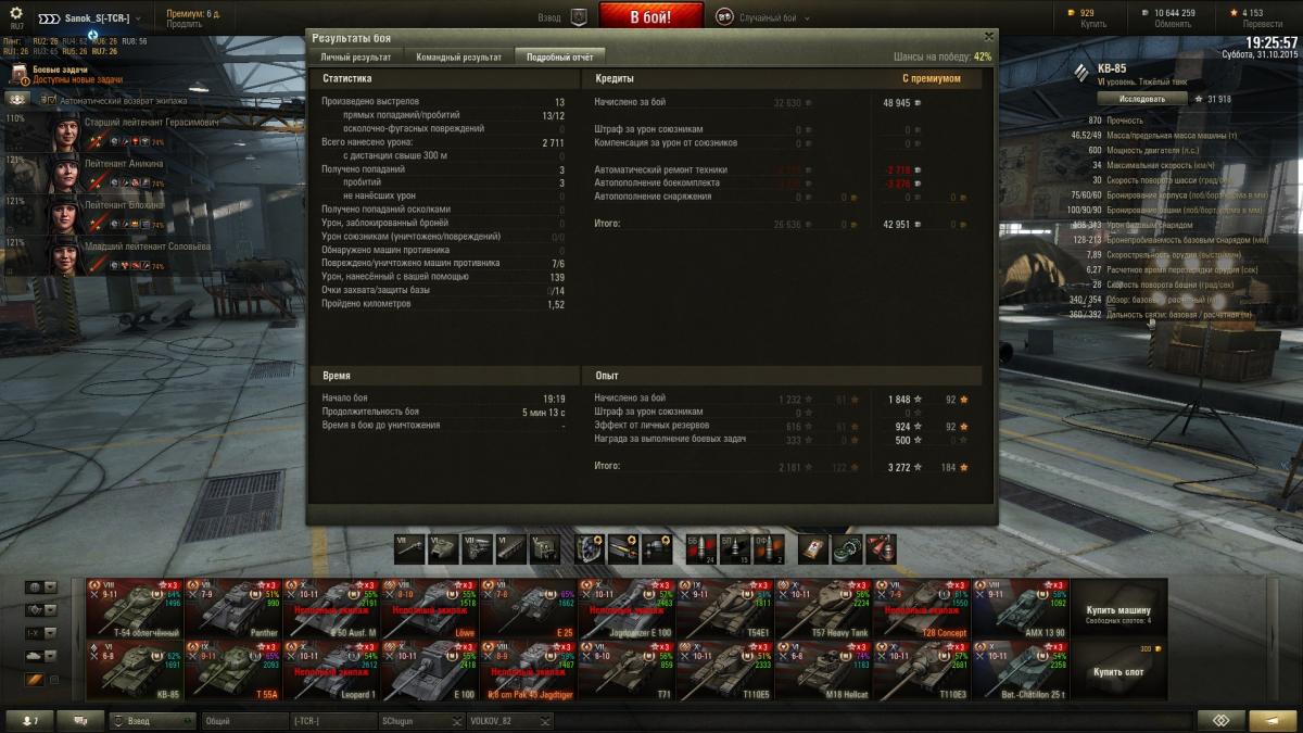 Sanok_S Опубликовано: 31 октября, 2015 Игроки 9 576 публикаций 33 973 боя Поделиться Опубликовано: 31 октября, 2015 (изменено) Итак докладаю ИС успешно открыт и приобретен со скидкой, КВ-85 с пушкой 100 мм убер машина на своем уровнена 51м бою взята 2-я отметка, с отличием сделаны 2 ЛБЗ на об.260, выполнены боевые задачи на выходные 40 побед + получен вентиль уровня 3 и традиционно ещё 3 мастера http://cdn-frm-eu.wargaming.net/wot/ru/uploads/monthly_10_2015/post-10821115-0-52935700-1446318464_thumb.jpghttp://cdn-frm-eu.wargaming.net/wot/ru/uploads/monthly_10_2015/post-10821115-0-85353900-1446318466_thumb.jpghttp://cdn-frm-eu.wargaming.net/wot/ru/uploads/monthly_10_2015/post-10821115-0-21258700-1446318469_thumb.jpghttp://wotreplays.ru/site/6562516#redshir-sanok_s-kv-85http://cdn-frm-eu.wargaming.net/wot/ru/uploads/monthly_10_2015/post-10821115-0-98346300-1446318537_thumb.jpghttp://cdn-frm-eu.wargaming.net/wot/ru/uploads/monthly_10_2015/post-10821115-0-57050200-1446318540_thumb.jpghttp://cdn-frm-eu.wargaming.net/wot/ru/uploads/monthly_10_2015/post-10821115-0-13840500-1446318543_thumb.jpghttp://wotreplays.ru/site/6562510#ensk-sanok_s-kv-85http://cdn-frm-eu.wargaming.net/wot/ru/uploads/monthly_10_2015/post-10821115-0-38388100-1446318569_thumb.jpghttp://cdn-frm-eu.wargaming.net/wot/ru/uploads/monthly_10_2015/post-10821115-0-51990000-1446318571_thumb.jpghttp://cdn-frm-eu.wargaming.net/wot/ru/uploads/monthly_10_2015/post-10821115-0-95089300-1446318573_thumb.jpghttp://wotreplays.ru/site/6562854#f_ordy-sanok_s-kv-85ну и последний бой ни о чем, но на отметины хватило На самом деле открыл ИСа боем раньше, но до 2-й звездочки оставалась ерунда, решил взять, если честно и не знаю что делать дальше, танк рэально лег в руку, сток иса катать не охота, до топовой башни 6,5к свободки не хватает, предтоп ствол для ИС открыт на КВ-85http://cdn-frm-eu.wargaming.net/wot/ru/uploads/monthly_10_2015/post-10821115-0-97547500-1446318604_thumb.jpghttp://cdn-frm-eu.wargaming.net/wot/ru/uploads/monthly_10_2015/post-10821115-0-38730000-1446319047_thumb.jpg Изменено 31 октября, 2015 пользователем Sanok_S 1 Ссылка на комментарий