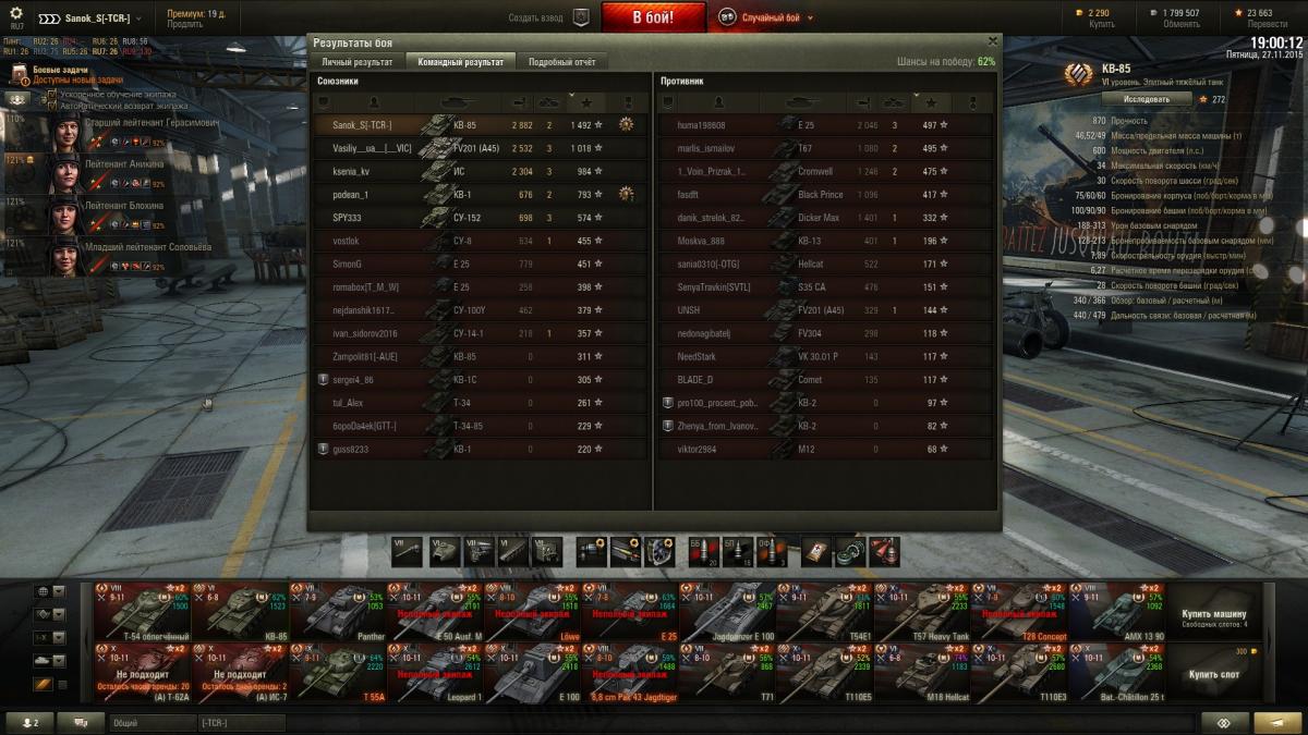 Sanok_S Опубликовано: 27 ноября, 2015 Игроки 9 576 публикаций 33 973 боя Поделиться Опубликовано: 27 ноября, 2015 (изменено) а я вот не удержался пока скидка на КВ-85 + акция на перм день и койки в казарме + мальца подкачать экипаж на ИС-3 + ещё чутка свободки для БЛ-9, выкупил опятьну и вот он этот самый бой, УВН у танка конечно хромает (-3 всего), пробовал с пайком катать и оптикой + радиоперехват, слепой все равно, вот как у меня есть сейчас и по перкам и по оборудованию для него оптимально, РП у командора можно на любой заменить что больше нравится, ни могут ни КВ-85 ни ИС светить вообщеhttp://cdn-frm-eu.wargaming.net/wot/ru/uploads/monthly_11_2015/post-10821115-0-13320600-1448640436_thumb.jpghttp://cdn-frm-eu.wargaming.net/wot/ru/uploads/monthly_11_2015/post-10821115-0-04710800-1448640439_thumb.jpghttp://cdn-frm-eu.wargaming.net/wot/ru/uploads/monthly_11_2015/post-10821115-0-61294600-1448640441_thumb.jpghttp://wotreplays.ru/site/6720068#hayvey-sanok_s-kv-85красивый http://cdn-frm-eu.wargaming.net/wot/ru/uploads/monthly_11_2015/post-10821115-0-78563700-1448640444_thumb.jpgпройдет акция на него и продаю, экипаж переобучаю на ИС-3 з.ы. больше 100 боев и 1,5к среднего, хороший танк для своего уровня Изменено 27 ноября, 2015 пользователем Sanok_S 1 Ссылка на комментарий