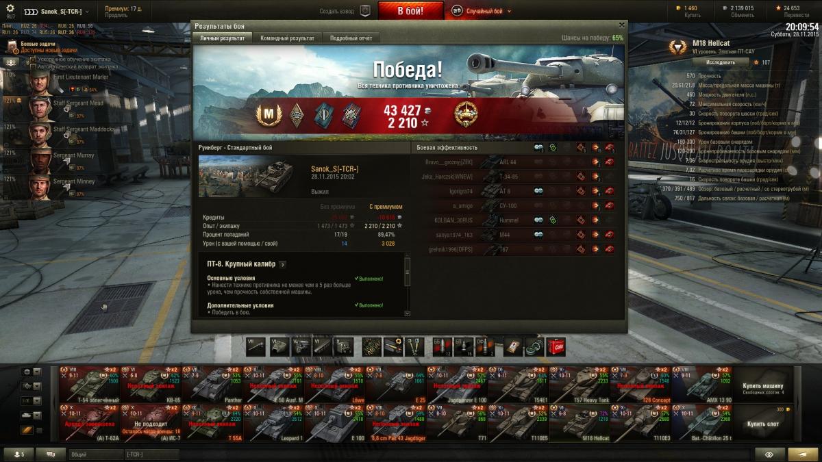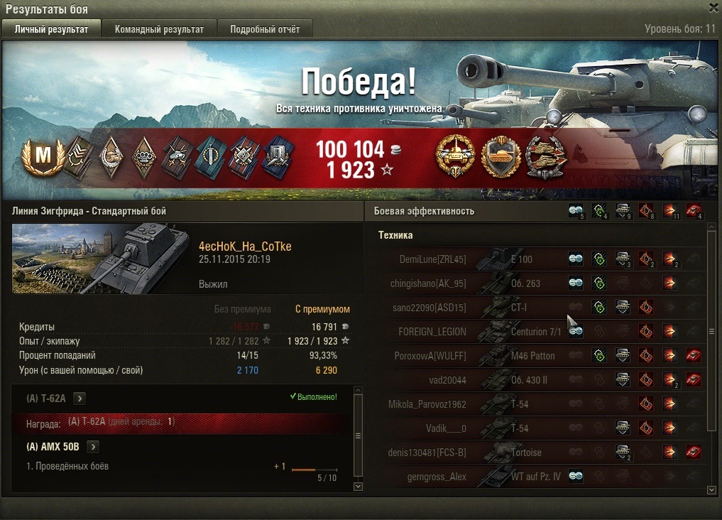 Sanok_S Опубликовано: 29 ноября, 2015 Игроки 9 576 публикаций 33 973 боя Поделиться Опубликовано: 29 ноября, 2015 а я чет на лоулевелах подразмяк, заканчивать нужно и уходить в топ технику, среди начинающих и слабых игроков относительно легко играть, а вот на хай лвл технике даже на голде и пайках шибко далеко не уедешь.ещё бы подняпрячься и сделать на П1 вот эти ЛБЗ, т.е. нужно заканчивать играть, а просто взять и подождать момента для выполнения ЛБЗ и все, больше ничего, пофиг дамаг и винрейт, только ЛБЗ и мона возвращать экипаж домой на е50м, я с мая на мытом не катал 8 "Противостояние" Уничтожить 1 средний танка противника на 2 уровня выше. Нанести не менее 2000 урона. Большая аптечка: х7, большой ремкомплект: х7, автоматический огнетушитель: х7. 200 000 кредитов 11 "На таран!" Уничтожить тараном машину противника на уровень выше. Победить в бою.Выжить в бою. 4000 свободного опыта. 2 суток премиум аккаунта. 12 "Испепелитель" Поджечь не менее 2 машин противника (или дважды поджечь одну машину) на уровень выше. Попасть в топ-3 игроков своей команды по опыту. 4000 свободного опыта. 2 суток премиум аккаунта. Ссылка на комментарий
