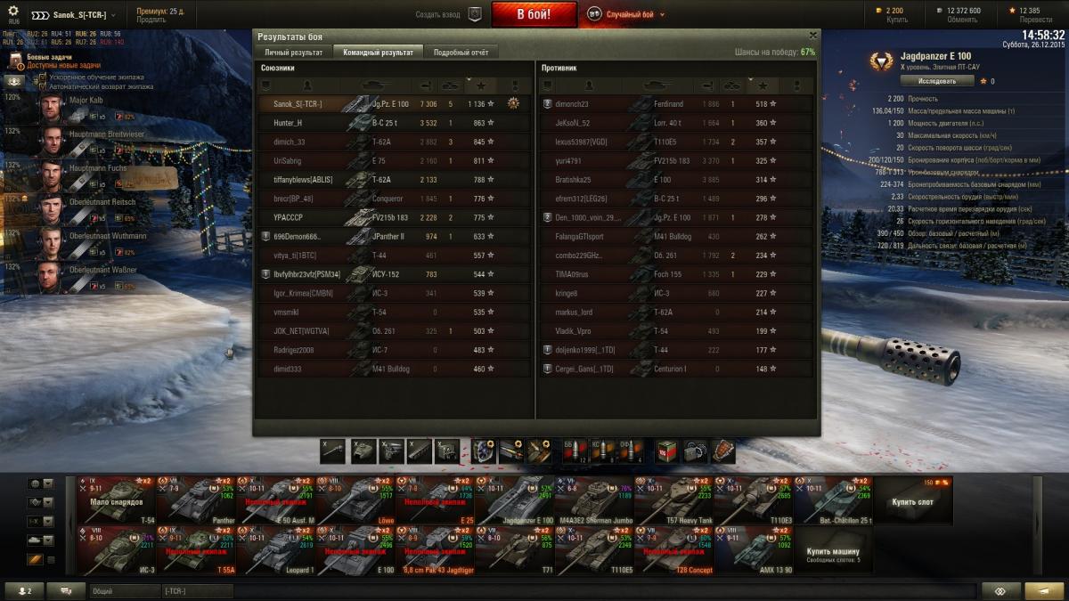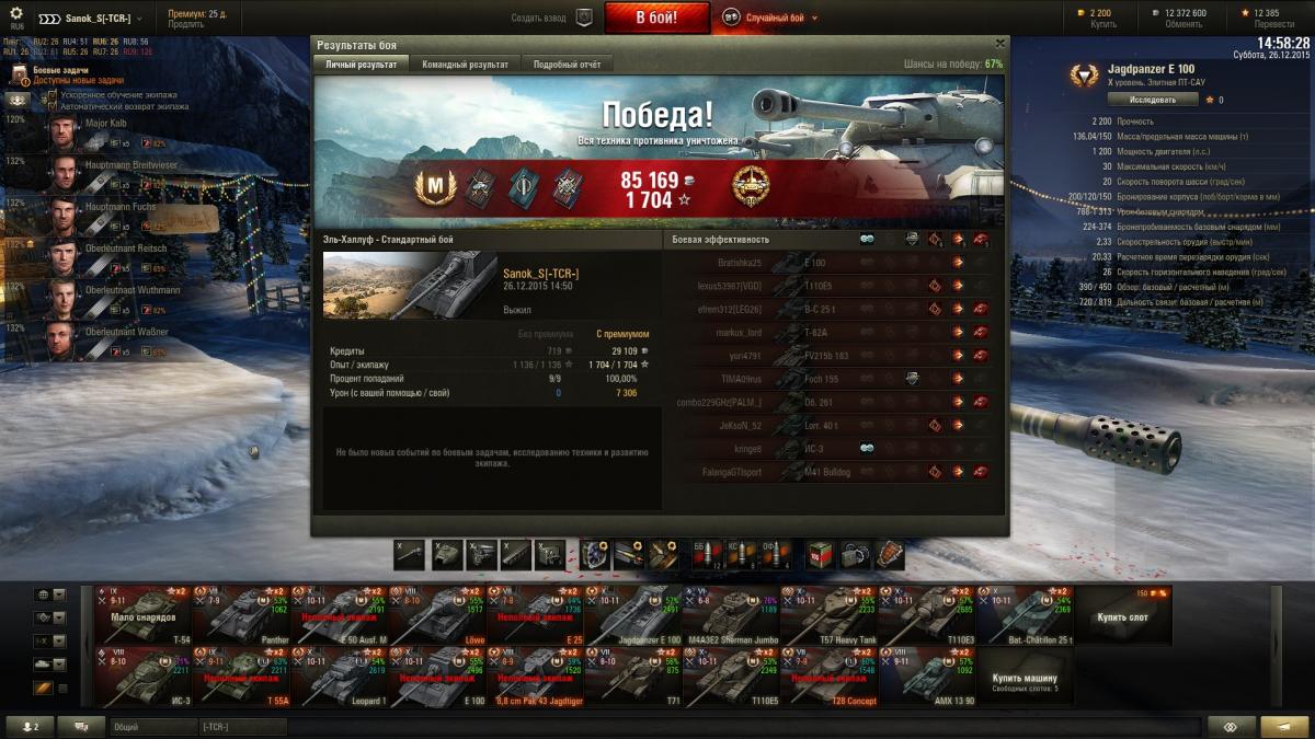 Sanok_S Опубликовано: 26 декабря, 2015 Игроки 9 576 публикаций 33 973 боя Поделиться Опубликовано: 26 декабря, 2015 все таки вот именно такая сборка на пистоле почему-то у меня лучше всего играет, наверное так и буду катать. Ну шо с почином так сказать, 2-я 10ка с 2мя отметками и Е100 и Япесто почти по 2,5к среднего, уже на половину не стыдно Ссылка на комментарий