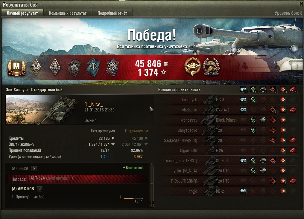 Grosser_Kurfurst Опубликовано: 21 января, 2016 Игроки 2 812 публикации 44 624 боя Поделиться Опубликовано: 21 января, 2016 (изменено) 21 Янв 2016 - 22:51 пользователь VLD_78 сказал:Андрюх ищо маленький бонус)и лбз 15 на тт Спасибо, но по кол-ву боев ты видишь, что акк челу не особо нужен, поэтому ЛБЗ ему побоку. А так спасибо конечно))) И да, акк никто не отбирает, катай сколько влезет. З.Ы. Мы с дядей Ух ввзодим в корабли ща. У него нет хай-левела, поэтому катаем на миддл=) Изменено 21 января, 2016 пользователем Grosser_Kurfurst Ссылка на комментарий