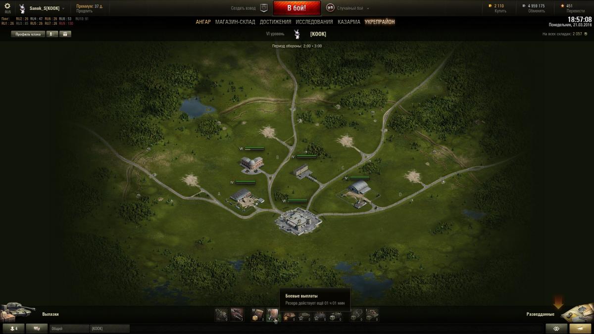 TheSunToucher Опубликовано: 21 марта, 2016 Игроки 1 676 публикаций 5 894 боя Поделиться Опубликовано: 21 марта, 2016 Саня, ну ты глянь в каком ты здании находишся - дело в то. Там и будет написано на сколько резерв активирован, когда закончится. Саня, ну ты что уж ... Не смог в укреп ? Ссылка на комментарий Поделиться на других сайтах Другие способы поделиться...
