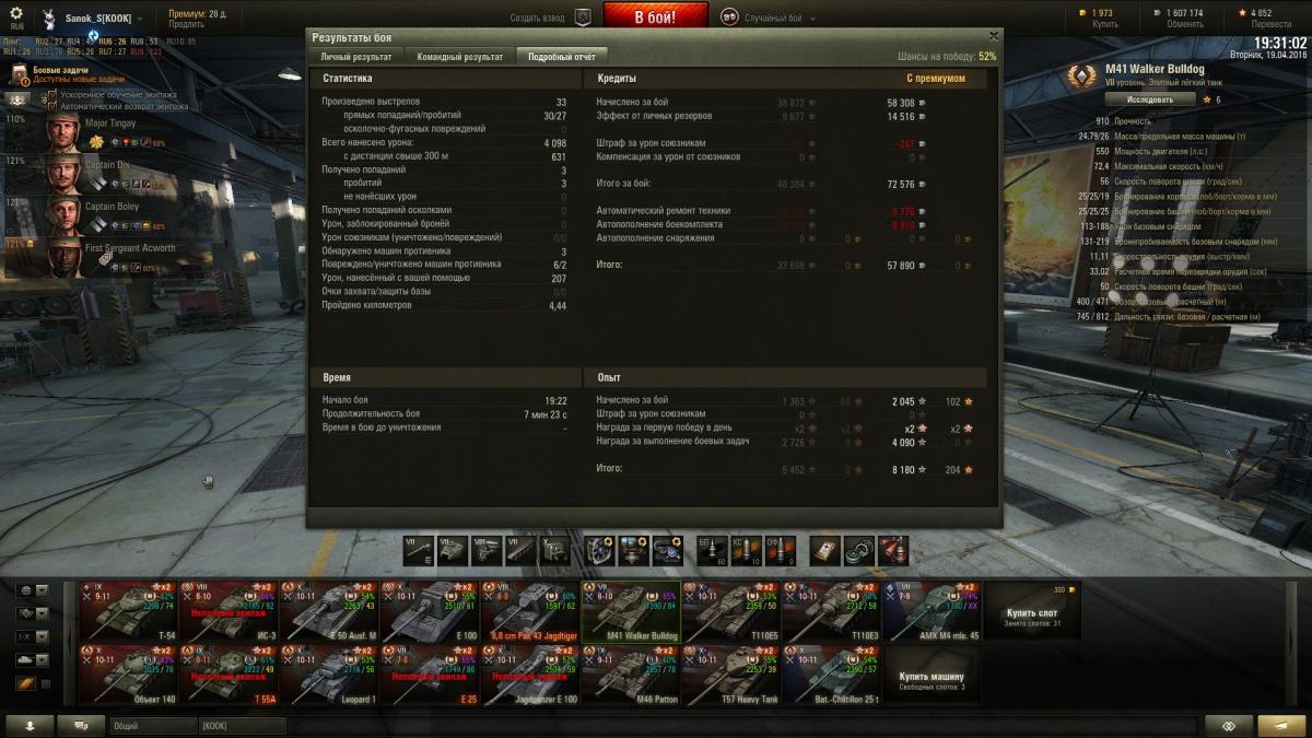 Sanok_S Опубликовано: 16 апреля, 2016 Игроки 9 576 публикаций 33 973 боя Поделиться Опубликовано: 16 апреля, 2016 (изменено) 15 Апр 2016 - 13:04 пользователь Pahey_prim сказал:http://wotreplays.ru/site/7835909#zapolyar_e-pahey_prim-cromwell_b красиво!15 Апр 2016 - 13:06 пользователь Pahey_prim сказал:Большое, кривое, долгосводящееся, не танкуюшеену да, пока не очень, мне хватило свободки просто чтобы дойти до него, начинал в полном стоке, даже в топе почти никого не пробивал, как поставил орудие после топ башни стало половчее, осталось 105 мм открыть и топ двигло, я катаю с резервами на экипаж, опыт на танк + свободный опыт чтобы побыстрее пройти, в топе для своего уровня не плохой получится, но в стоке печален оченьпока пожалуй лучший бой, 300 опыта до след. орудияhttp://cdn-frm-eu.wargaming.net/wot/ru/uploads/monthly_04_2016/post-10821115-0-79782600-1460790717_thumb.jpg32 боя боли, вывел в топ, пробую топовый, хотя все равно не очень чета танчик с топовыйм двиглом половчее, но все равно убого все, побыстрее бы пройти его нафег Боек уже на топовом танкеhttp://cdn-frm-eu.wargaming.net/wot/ru/uploads/monthly_04_2016/post-10821115-0-04047600-1460822294_thumb.jpghttp://cdn-frm-eu.wargaming.net/wot/ru/uploads/monthly_04_2016/post-10821115-0-67229300-1460822296_thumb.jpghttp://cdn-frm-eu.wargaming.net/wot/ru/uploads/monthly_04_2016/post-10821115-0-27976100-1460822299_thumb.jpghttp://wotreplays.ru/site/7844891#kareliya-sanok_s-arl_44 Пахей, ну прошел я его вот в такой сборке, тащить на нем не то что сложно, вообще не возможно, только как танк поддержки, слепой, но после полного топа более или менее, после двигла хоть кружиться стал, орудие 105 мм, если в топе или с 7 лвл в основном на ББ, на 8ках уже голдишку подряжаешь, я так понял и на следующем танке на нем же катать нужно, ну посмотрим, пока х2 опыт с каждой победы постараюсь завтра хотябы в топ вывести 7куhttp://cdn-frm-eu.wargaming.net/wot/ru/uploads/monthly_04_2016/post-10821115-0-06661500-1460821525_thumb.jpg Изменено 16 апреля, 2016 пользователем Sanok_S Ссылка на комментарий Поделиться на других сайтах Другие способы поделиться...