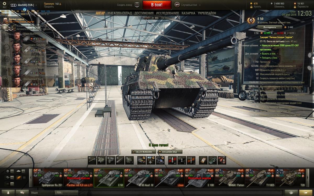 ilim500 Опубликовано: 4 мая, 2016 Игроки 19 460 публикаций 43 276 боёв Поделиться Опубликовано: 4 мая, 2016 04 Май 2016 - 11:47 пользователь Sanok_S сказал:2 недели будет этот самый марафон идти если 50Б выиграет?не знаю даже, выходит на 9 мая желательно 50100 выкупить и до июня пройти его, постараться накопить как можно больше свободного опыта чтобы частично что-то на 50120 сразу открыть ибо там почти 100к опыта надо, будет как с т-10 сначала 100 боев вывод в топ, только потом начнется нормальная игра, тоже около 100-120 боев понадобится штабы открыть 50Б и приобресть его. С одной стороны 30% скидка по ветке хорошая штука, с другой стороны вдалбливаться с 1 ветку тоже как-то не очень, тем более погода так-то на шашлыки намекает и рыбалку з.ы. я в пятницу последний день, потом 2 недели отпуска не спеши донатить свободку - сток 50-120 - самый комфортный из всех, что я пробовал - пушка от 50-100 с 232 пробития - более чем достатоно)а я таки леопарда брать не стал)взял е50 взад:http://cdn-frm-eu.wargaming.net/wot/ru/uploads/monthly_05_2016/post-1654869-0-91483500-1462352689_thumb.jpgв ангаре 3.5 мульта - и страшный искус копить ли до 121 или купить ягра или т-54)) [-A-W-] The Angels of War Ссылка на комментарий