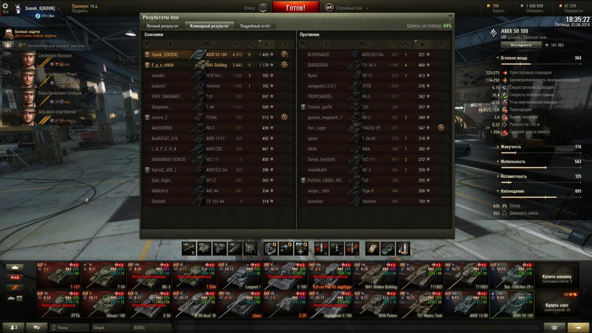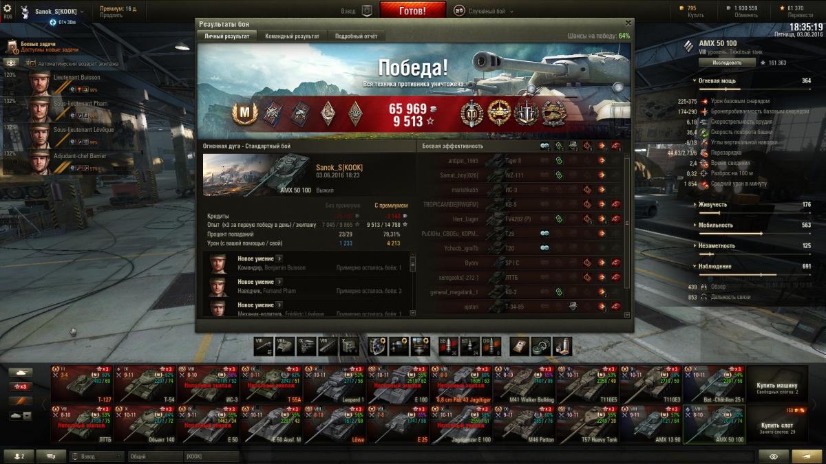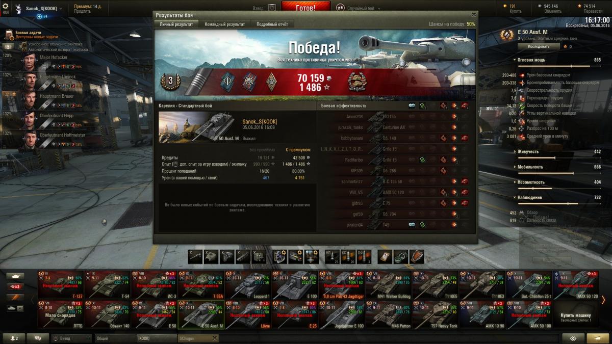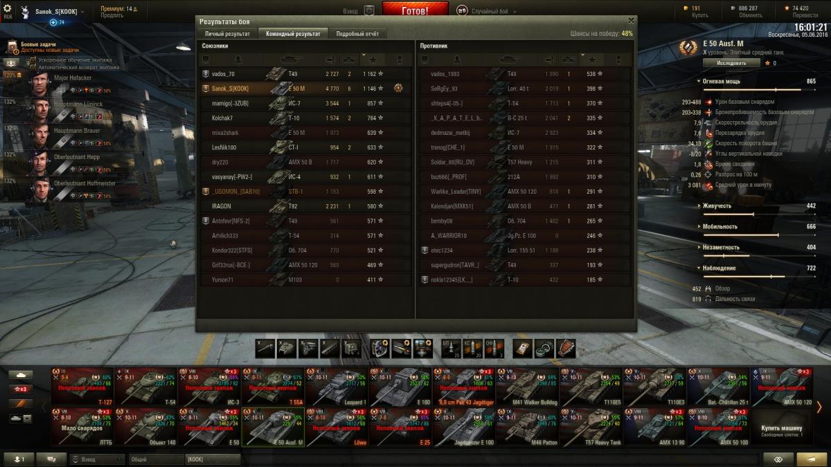 Pahey_prim Опубликовано: 8 июня, 2016 Игроки 5 082 публикации 24 904 боя Поделиться Опубликовано: 8 июня, 2016 (изменено) Да ничего нового, вот и не пишем. Жду скидку на переобучение экипажа для 50Б, а так же подумываю переобучить родной экипаж с Кромвеля Б на ФВ215Б и выкупить его, Конкерора продавать не хочу. На 50-100 не удалось выполнить ЛБЗ - убить 2 ТТ на 2лвл выше, поэтому начал катать Дед-3 для выполнения, попутно добить на нём третью звезду. Вчера немного пофармил на Кромвеле Б, приняв приглос в динамический взвод с Руди и прем Шерманом, из 10 каток 90% винрейта. Изменено 8 июня, 2016 пользователем Pahey_prim В рот вас… Мама целовала Ссылка на комментарий Поделиться на других сайтах Другие способы поделиться...