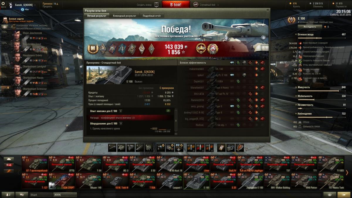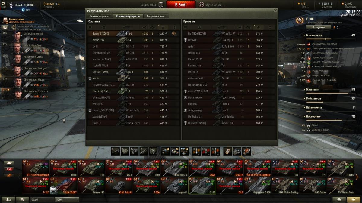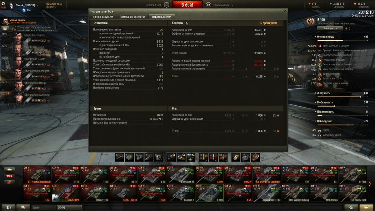 денег нет да, все деньги у меня съедаются покупкой всяких разных пайков, на некоторых танках аля т54/т55 стал катать больше на голде, про е100 молчу, хотя на нем на выходных не мало покатал, с 18 июля 42 боя на сарае проехал (это почти фулл голда + шоко + большие ремки), качаю экипаж пока акция + получу скоро приз по акции, там вентиль дадут 3 уровня за 600к, досылатель уже получил за недельные испытания.