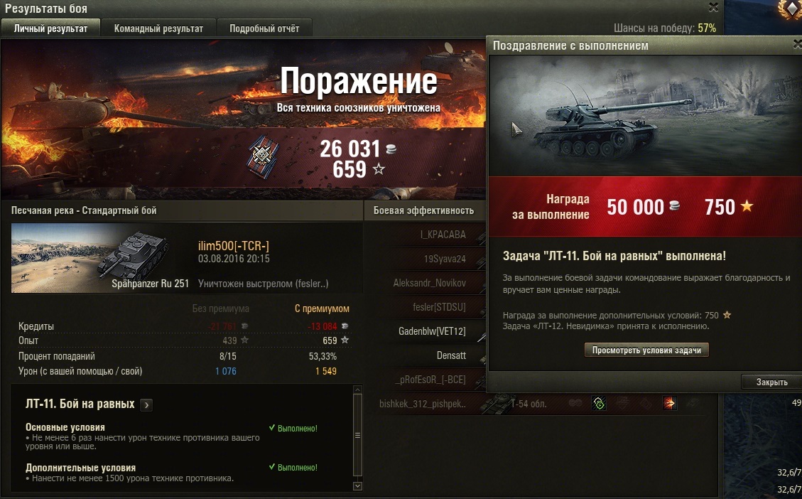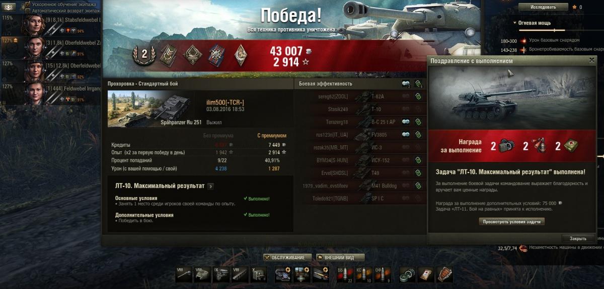 ilim500 Опубликовано: 2 августа, 2016 Игроки 19 460 публикаций 43 276 боёв Поделиться Опубликовано: 2 августа, 2016 02 Авг 2016 - 08:18 пользователь Sanok_S сказал:тароф Стас, а фиг его знает, я ничего не понял из видео, там падает фпс не падает, в скобках смотреть или за скобками не понятно, а вот где дедушка на лассвиле разъяснял про вертухи свои вот это действительно эпично, только вот если игрок слабый, то ему ничего не поможет пусть хоть герляндами обвешается. Про прицел самое эпичное что я видел ниже, я уже выкладывал вам этот повтор, до сих пор видео висит на вотреплейс и все нормально, никто даже не стал стирать, хотя там на видео аналогичная с дедушкиной ситуация, мальчик играет только в мехвода, наводчик автоматический, комменты ломятся и все равно репушка живет як памятник http://wotreplays.ru/site/2111433#utes-superdimitei999-t110e3 тюююю как, у меня ис3 имеется, покрашен за голду с 3 звездочками и оборудованием, только вот 2 дам с ЛБЗ не хватает А вот то что ты сказал про ИС-7 спасибо, он у меня открыт и как раз ждал подобной скидки, надо 4кк как-то нафармить или распродать склады, посмотрю, чет никак я не сяду играть, осталось 8 дней према, пож попробовать подфармить 140 хороший танчик, мне понравился, но и лео 1 так же мне нравится, за сим есть оба, тем более лео 1 с т55 одним экипажем балуются. Т.е. ты е50 продал на основе или это песок? Я просто по скидке в бой наоборот себе е50 зачем-то купил, ну мытый понятно давно стоит, но опять же, танков набрал, а толком ничего не катаю про скиду на ветку ис-7 - с 1:02сервера песочницы давно остановлены - поэтому - да, продал. Пускай и арта будет на всякий пожарный. 1 [-A-W-] The Angels of War Ссылка на комментарий