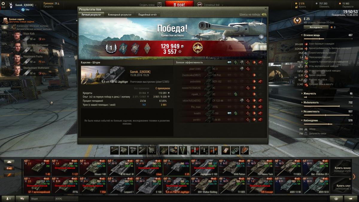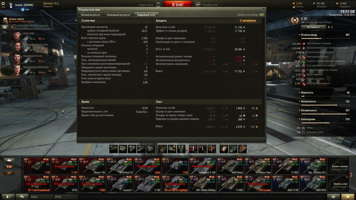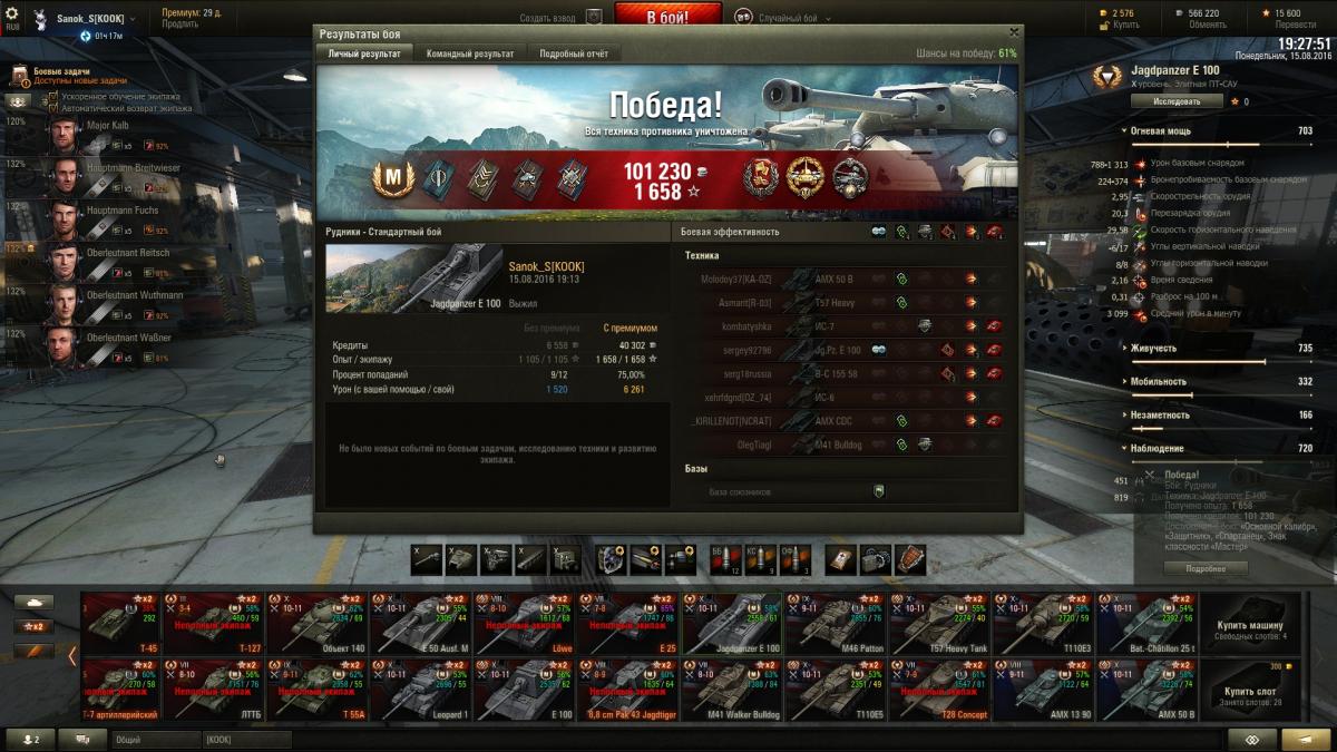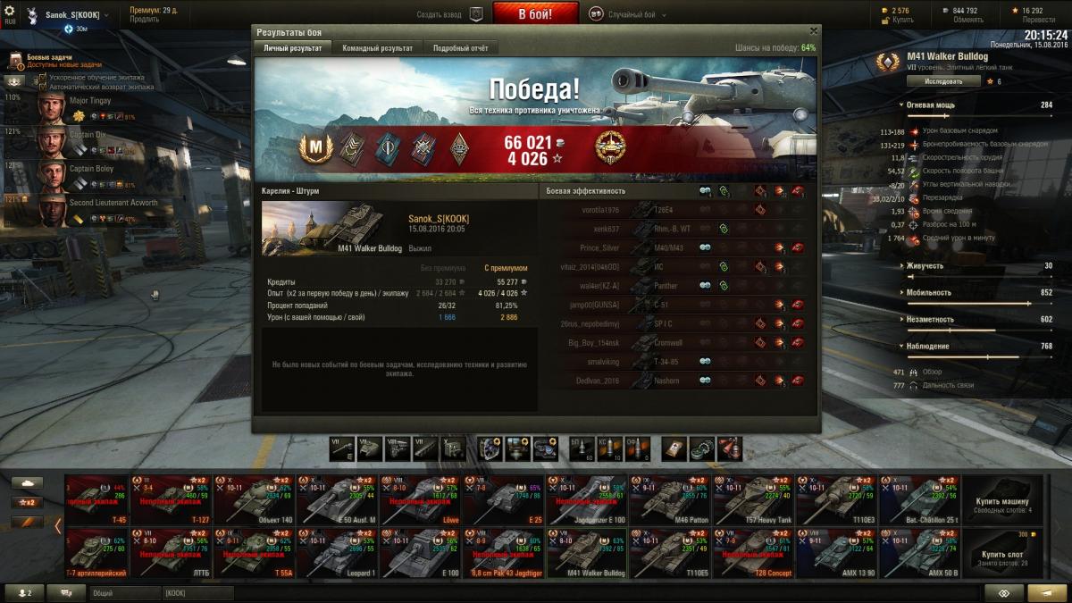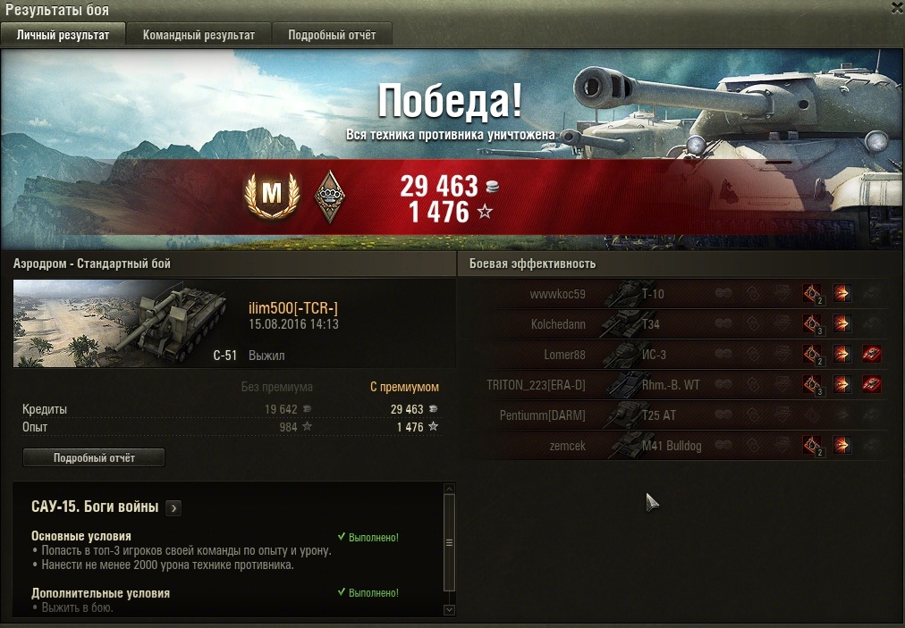 Sanok_S Опубликовано: 16 августа, 2016 Игроки 9 576 публикаций 33 973 боя Поделиться Опубликовано: 16 августа, 2016 (изменено) 15 Авг 2016 - 20:42 пользователь ilim500 сказал: ой всё!http://cdn-frm-eu.wargaming.net/wot/ru/uploads/monthly_08_2016/post-1654869-0-30643900-1471293744_thumb.jpgтююю Илимко, не завидую я тебе, когда на ИС-3 переходишь, то нужно открывать только пушку, затем башню, затем гусли, двигло идет с ИСа, все по человечески сделано и не дорого, на стоковые гусли ставится все модули и все оборудование, на Т-10 просто вилы, мне понадобилось то ли 90, то ли 100 боев чтобы вывести 9ку в топ и только после этого она начала играть, притом пушку без гуслей ты не поставишь, торсионы нужны, двигатель не переходящий, а новый, одним словом крепись комрад, но когда ты выведешь его в топ, танчик будет ничаво, последним я открывал двигатель и танк начал летать.вот в такой сборке я катал, точнее брал 3-ю метку, до этого катал без пайка, жертвуя обзором, с оптикой он мне не понравился http://cdn-frm-eu.wargaming.net/wot/ru/uploads/monthly_08_2016/post-10821115-0-94251200-1471325326_thumb.jpgтолько большую аптеку мона заменить на малую, а малую ремку на большую, танк в отличии от ИС-3 в топе имеет базовый обзор в 400 метров, т.е. для достижения 444 метров нужно ОГ+ББ+вент+паек, а для достижения 445+ метров ОГ меняем на РП, правда на ИС-7 потом опять придется переобучать командора ибо там радист один из заряжающих, поэтому мона ОГ сразу 4м перком учить.смотрю ты поставил вместо ремонта мастер на все руки, не знаю как у тебя, у меня не было этих самых постоянных критов мехвода и 1 аптечки на бой обычно хватало, а вот ремонт на ТТ должен быть у всех и чем быстрее тем луче. В отличии от ИС-3, который рэально ТТ, Т-10 больше СТ как в плане подвижности так и в плане бронирования, корпус слабенький, боеукадку нет нет да критуют, я на нем больше по направлениям СТ катал, иногда и с ТТ, по ситуации, тебе нужно просто пережить его стоковое состояние, будет сложно, особенно с 10ками, но потом будет ништяк, если у тебя СТ-1 пройден, то с него будет открыто орудие, торсионы вместо вентиля и уперед, с топ пушкой уже попроще. Изменено 16 августа, 2016 пользователем Sanok_S Ссылка на комментарий Поделиться на других сайтах Другие способы поделиться...
