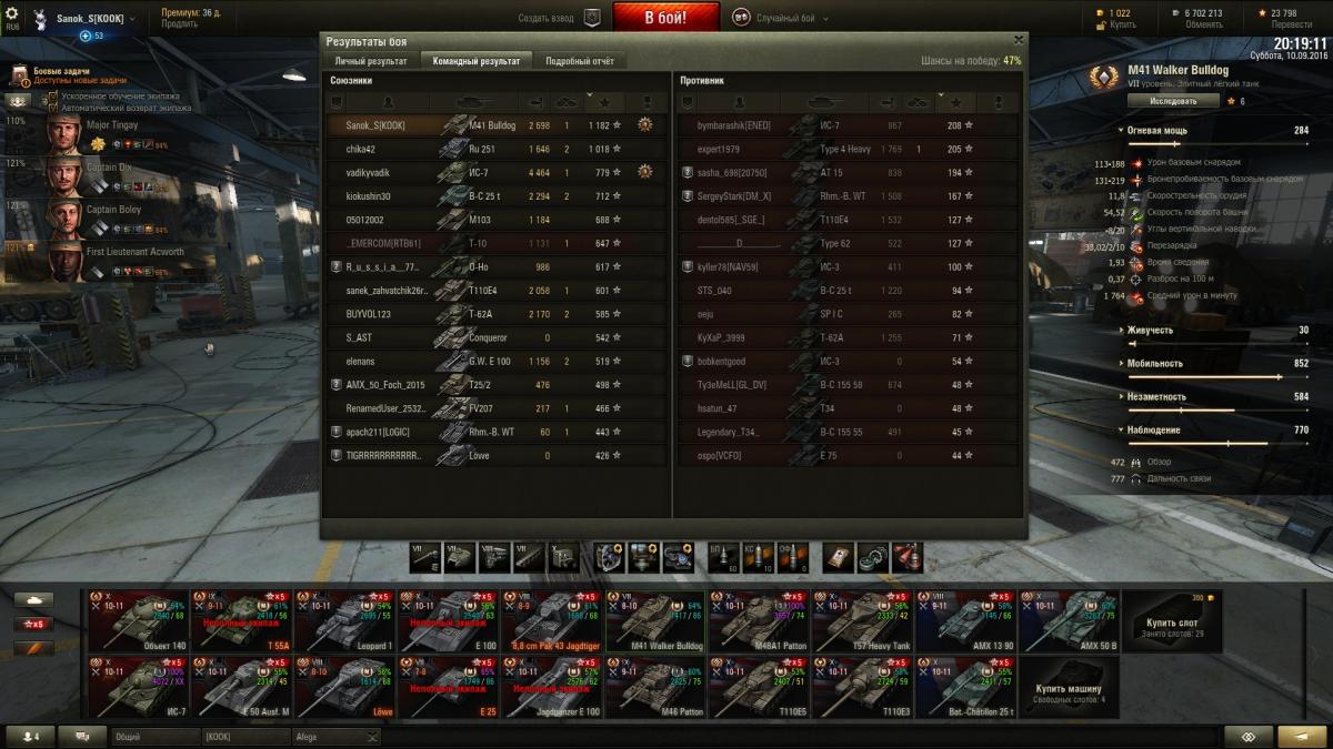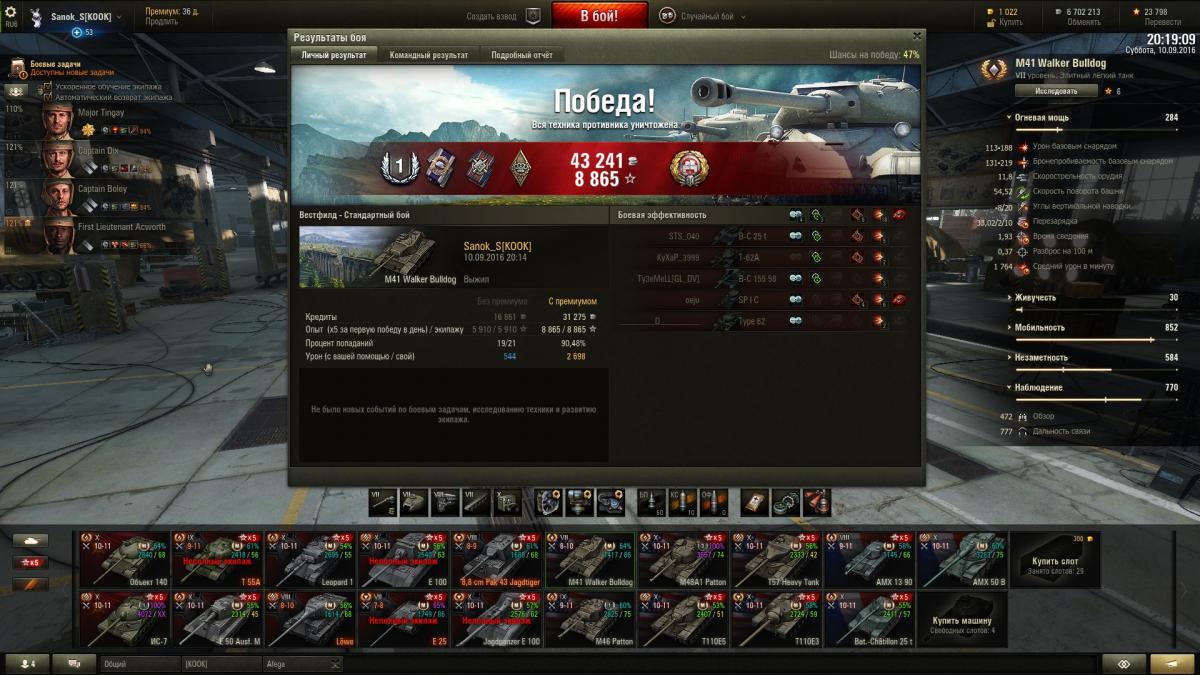 anonym_QBA6iDyUkjKj Опубликовано: 9 сентября, 2016 Игроки 167 публикаций 33 544 боя Поделиться Опубликовано: 9 сентября, 2016 09 Сен 2016 - 18:46 пользователь Sanok_S сказал:привет Костик, пока не знаю, только 1 бой проехал, никак звезды не помою, на новых танках смылись с 1-го разана 9м уровне не везет, еле смыл звезду, а вообще вот несколько сегодняшних интересных вещейне было арты, пытался жить и стрэлять до последнегоhttp://cdn-frm-eu.wargaming.net/wot/ru/uploads/monthly_09_2016/post-10821115-0-49705300-1473446697_thumb.jpghttp://cdn-frm-eu.wargaming.net/wot/ru/uploads/monthly_09_2016/post-10821115-0-28359000-1473446701_thumb.jpghttp://cdn-frm-eu.wargaming.net/wot/ru/uploads/monthly_09_2016/post-10821115-0-68701700-1473446704_thumb.jpgну и вот как вышло сегодня, не знал если честно что без засвета попал пару раз, думал опять не сделал, короче теперь фрагов не хватило, но зато 3-я дама уже сидит в ИС-3, надо катать больше ТТ и скоро к ней присоединится 4-я http://cdn-frm-eu.wargaming.net/wot/ru/uploads/monthly_09_2016/post-10821115-0-54576500-1473446708_thumb.jpghttp://cdn-frm-eu.wargaming.net/wot/ru/uploads/monthly_09_2016/post-10821115-0-30049300-1473446712_thumb.jpghttp://cdn-frm-eu.wargaming.net/wot/ru/uploads/monthly_09_2016/post-10821115-0-80586200-1473446715_thumb.jpgдама оказалась симпотной, сделал ее командоромhttp://cdn-frm-eu.wargaming.net/wot/ru/uploads/monthly_09_2016/post-10821115-0-92288600-1473446719_thumb.jpg ДА,ДА...Дама симпатишная Играя на батоне у меня складывается впечатление, что он точнее немца,хотя точность лучше у немца по статистике Противоречивое чувство((( А немец танкует.В очной дуэли с ст пока выносил всех на немце.Один раз ток бат голдовый прискакал - напинал и убёг ополовиненный. Зато гриля 15ый понравился Ссылка на комментарий