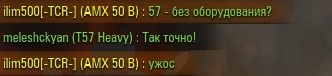 ilim500 Опубликовано: 25 октября, 2016 Игроки 19 460 публикаций 43 276 боёв Поделиться Опубликовано: 25 октября, 2016 стоит мод на показ оборудования /пока ВГ его разрешило/и как-то смотрю на респе - а у 57 ничего не показывает... дай, думаю, спрошу:http://cdn-frm-eu.wargaming.net/wot/ru/uploads/monthly_10_2016/post-1654869-0-73938800-1477409981_thumb.jpg [-A-W-] The Angels of War Ссылка на комментарий