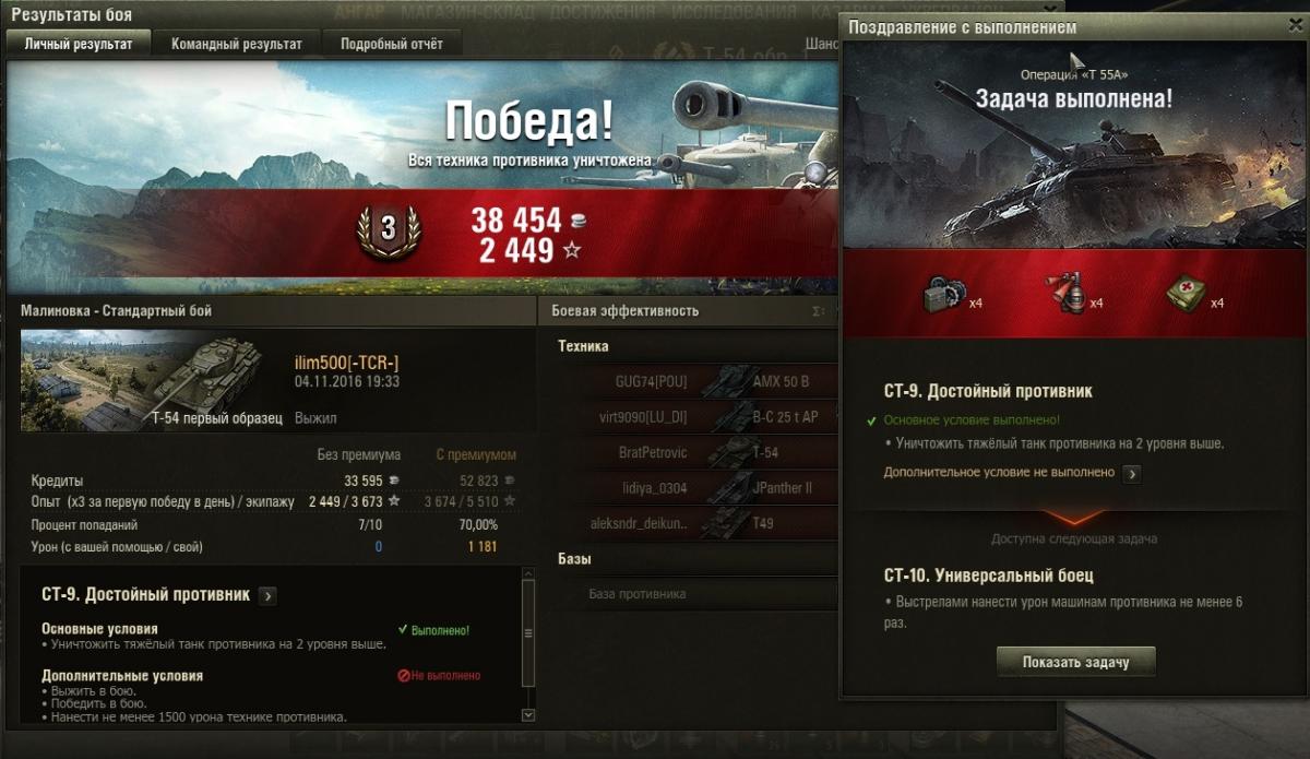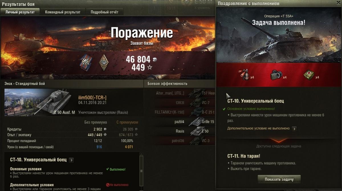 на 55ку элементарные задания, если будет скидка на ИС-4 и он уже открыт , то просто подкопи денюшкаф и по скидке его купишь, а дам будешь в него сажать по мере выполнения ЛБЗ, как вариант если хочешь ИС-4 сразу катать, то можешь поймать скидку на переобучение экипажа и сунуть из 416 в ИС-4, а дам потом подсаживать в 416 по мере выполнения ЛБЗ, я уже всех баб получил, в том числе и по об. 260, 4 шт. сидит в Лео 1/т55а/мутц, с учетоем боевых подруг докачивается 5-й перк (95%), 4 сидят в об140 (5-й перк 94%), 4 сидят в т62 (5-й перк под 50%) и 4 сидят в ИС-3 (3-й перк под 85%), этот же экипаж с ИС-3 будет и на об260 кататься, этих дам получил как раз по ветке 260. Все равно ТТ-15 добью, с 21 ноября иду в отпуск, проводил жану на работу, дочи отвел в сад, на обратном пути зашел в поликлинику за пивандосом и го в тутлы :hiding: