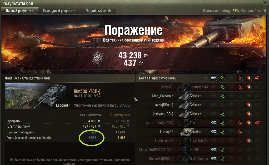 А вообще из всех топов что у меня в ангаре (Е100, е3, Япе100, е50м, Батчат, Лео1, е5, Хэви, об.140, ИС-7, 50В, т62 и паттон 10) у всех танков есть свои изюминки, сильные и слабые стороны, на многих танков игра идет по-разному. :)