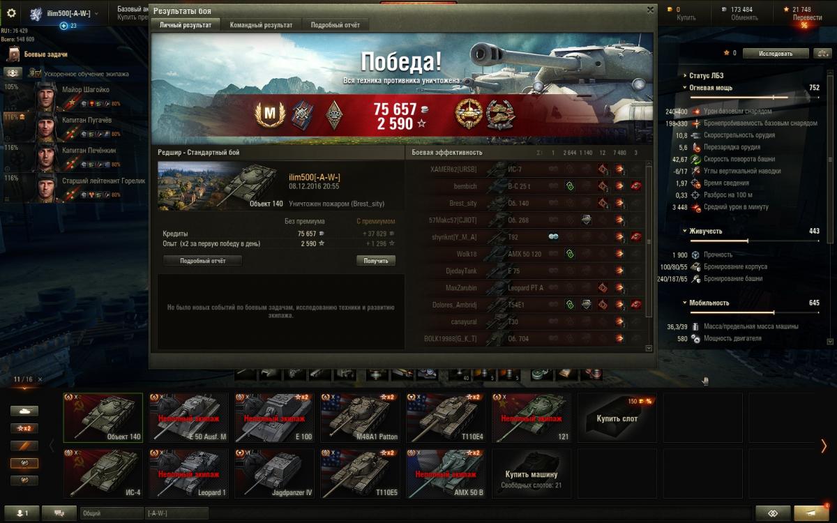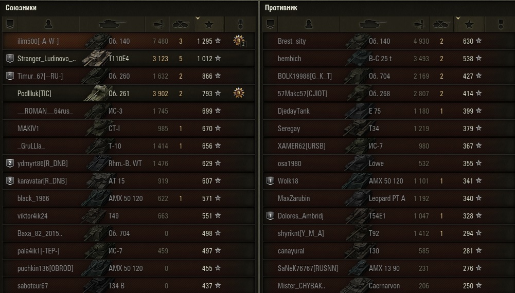 и того под 6 лвл желательно иметь т37 и т150, под 8 лвл ИС-3 и т54обл, под 10 лвл бат(правда я не умею на нем играть, а они иногда решают бои, поэтому ни одного боя на бате ни на ГК ни в обсе не проехал), об140 и т110е5. Вот это фактически основа и костяк нужный для ГК. Если же просто вылазки идут, средние, чемп и абс. вылазки (они же ротки) там берут все что угодно, для фарма берут прем технику 6 и 8 уровня, под 10ки уже по разному, там и баты, там и т62/об907, там и об260, массы и массы, чуть ли не звезды народ моет, только не в рандоме. :)